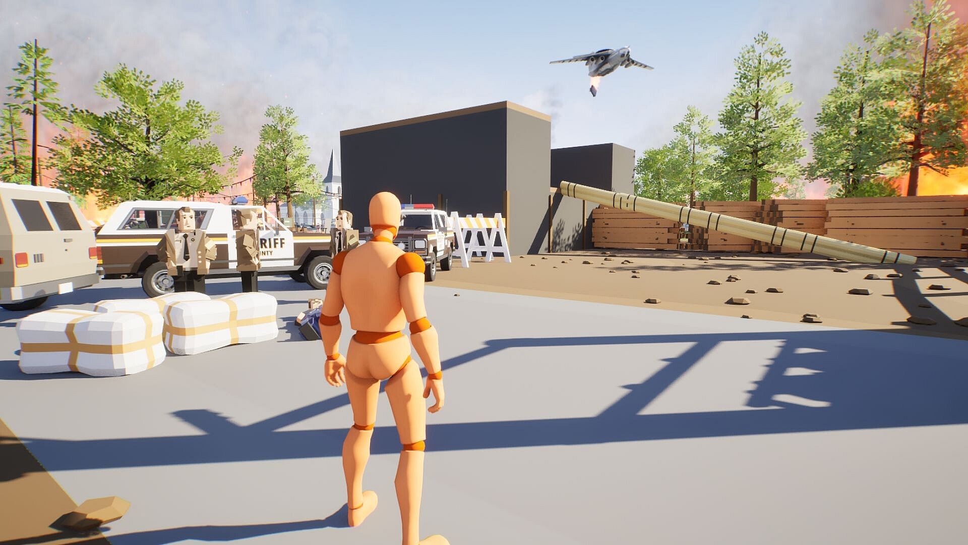 Your goal: escape a burning city by making your way to the jail on the far side of the map — the only safe haven left.