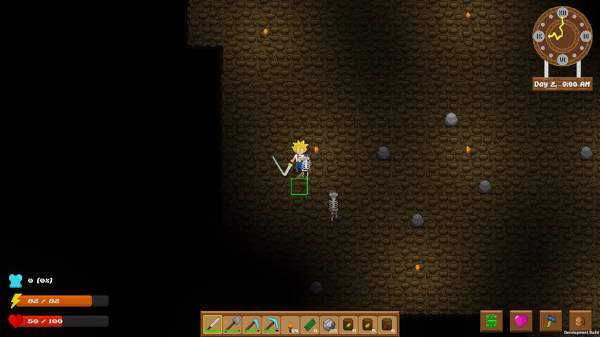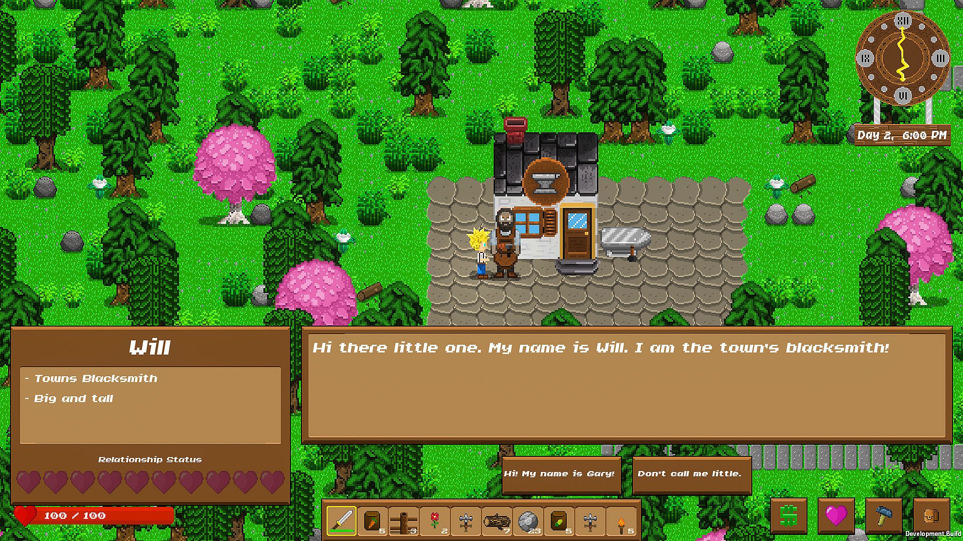• Skills. Every node you mine, every tree you cut, every crop you sew and harvest all gain you experience! The more skillful you become, the more you will be able to do!