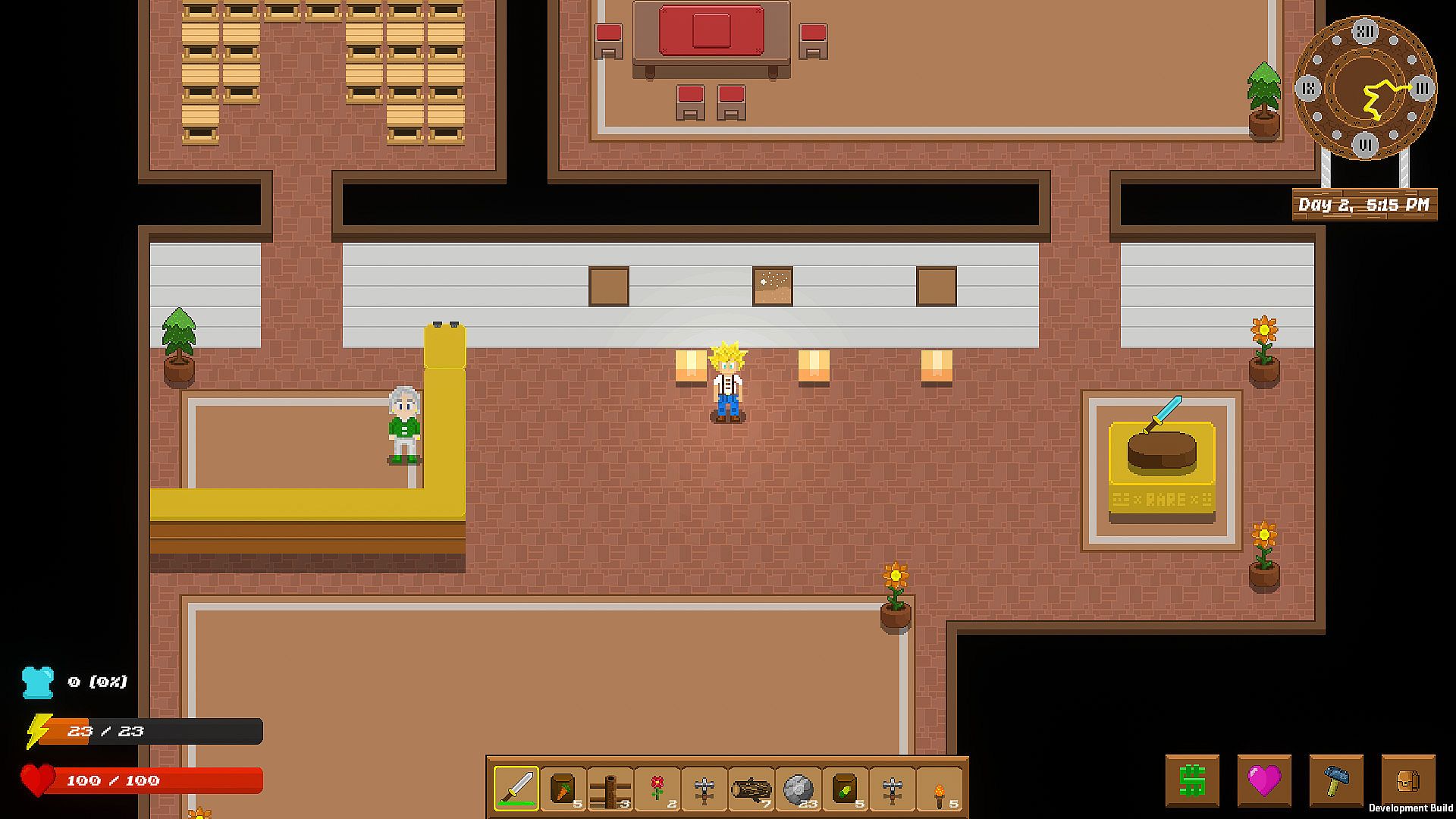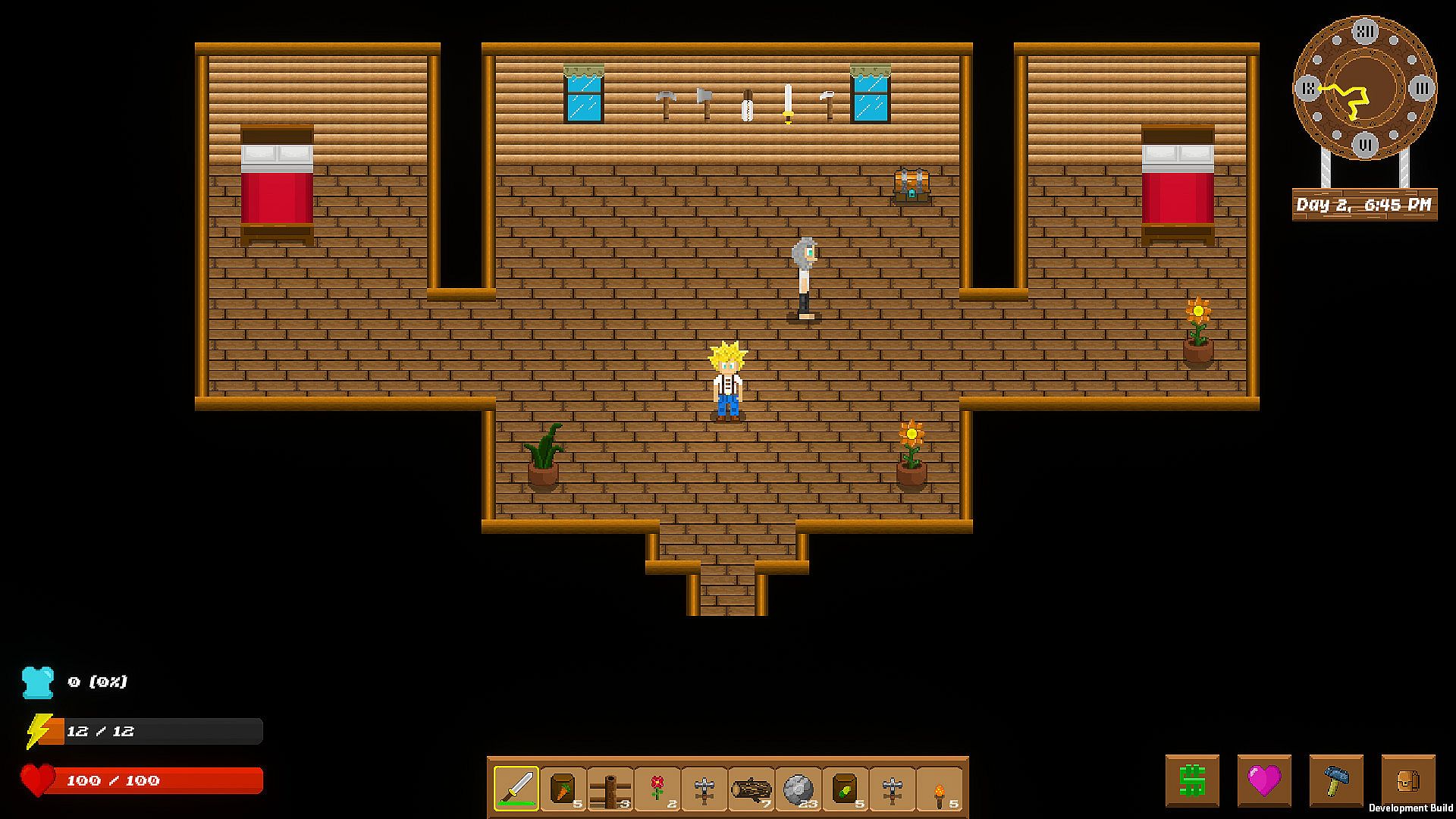 • Farming. Your farm is your life. Strategically build it for efficiency and safety. Animals will destroy your fences, the sun will dry up your crops, deer will eat your crops. Your crops can have randomized traits that can be extracted and added to other plants!