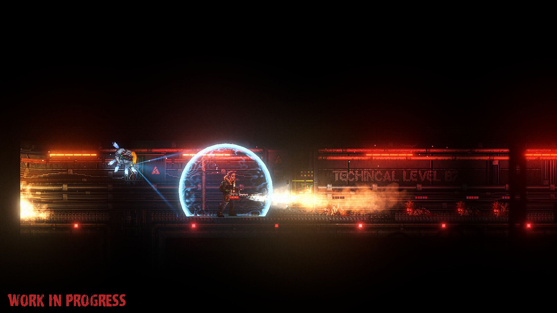 We've put great effort into the visuals – even with pixel art, we strive for cinematic lighting and an expressive atmosphere so that every moment feels alive and threatening. We are constantly developing our own solutions to make the light and effects as spectacular as possible.