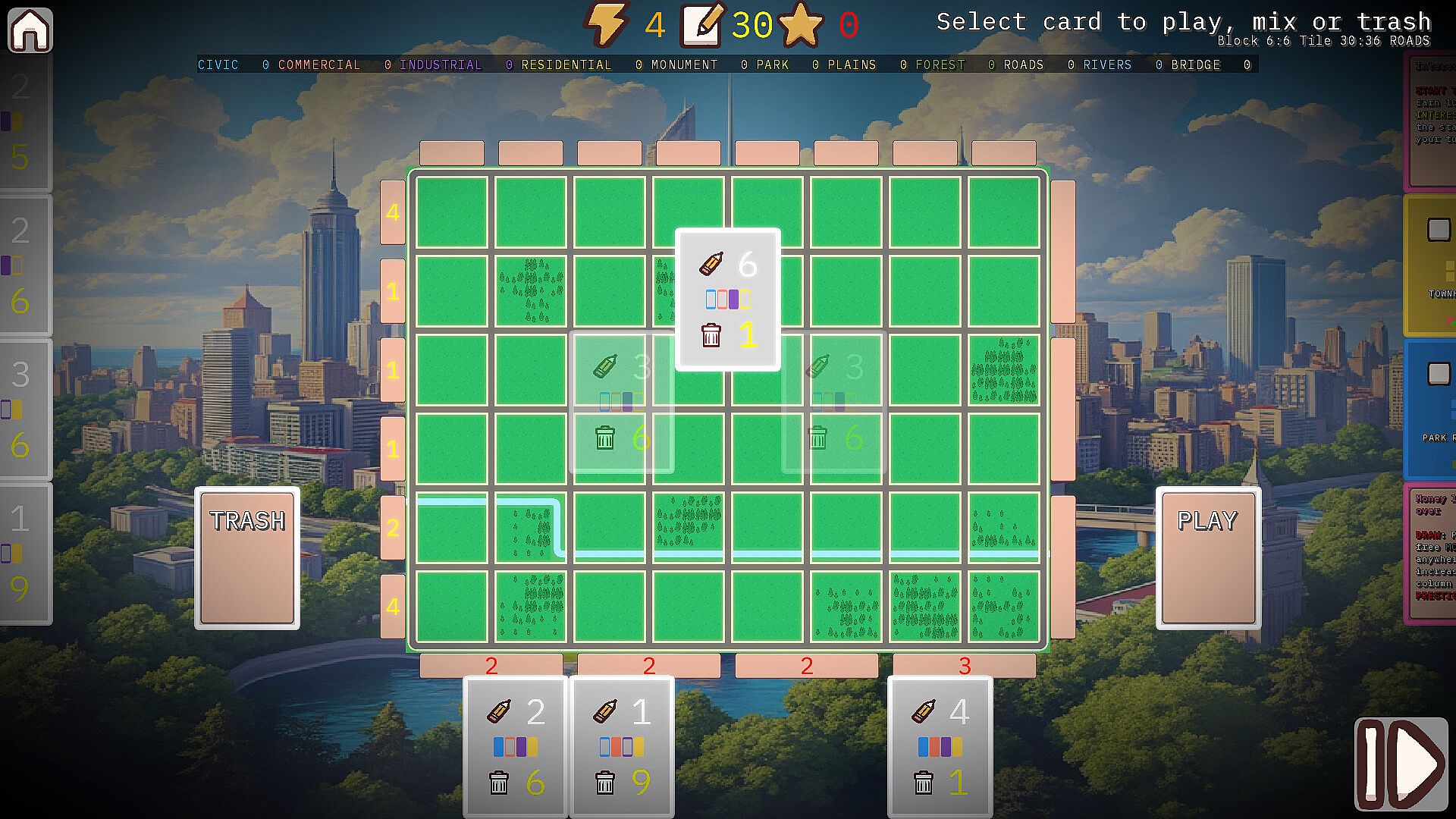 Card-Driven Strategy: Draw Permit, Plot, and Action Cards to drive your city planning. Use Permits to construct CIVIC, RESIDENTIAL, COMMERCIAL, and INDUSTRIAL buildings, each with unique combinations and synergies.