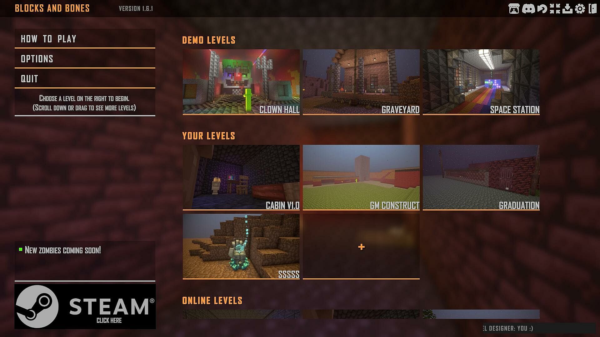 - Download custom levels from the main menu