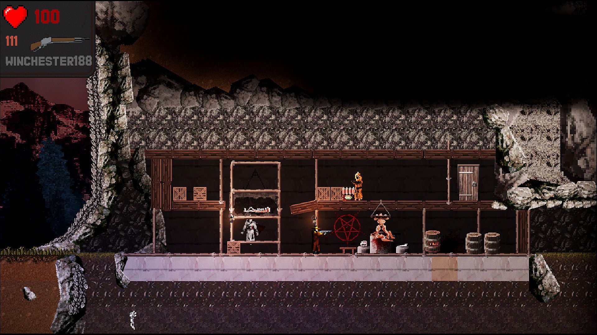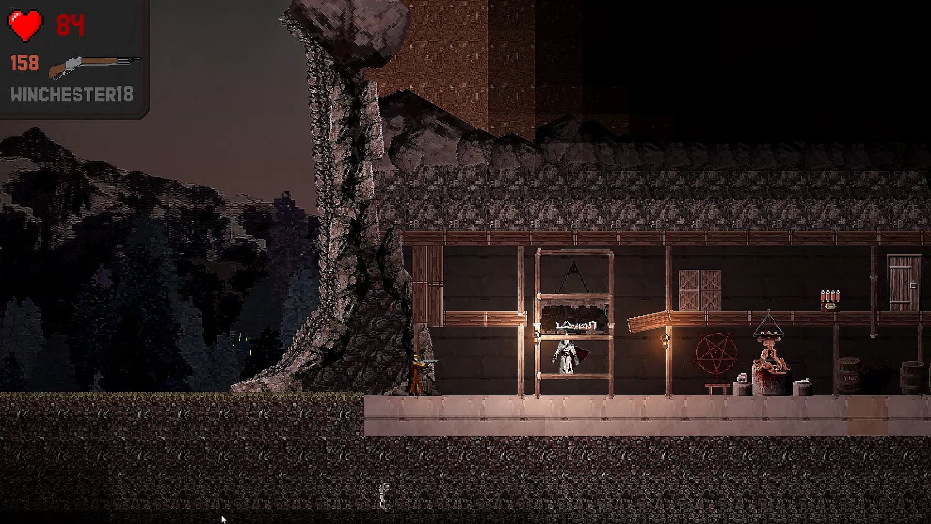Blood, occultism, zombies, crucified lustful soucubs, as well as hurricane shooting with realistic physics and calculation of the kinetic energy of bullets and fragments, and all this in pixel art - this is Blood Of Darkness