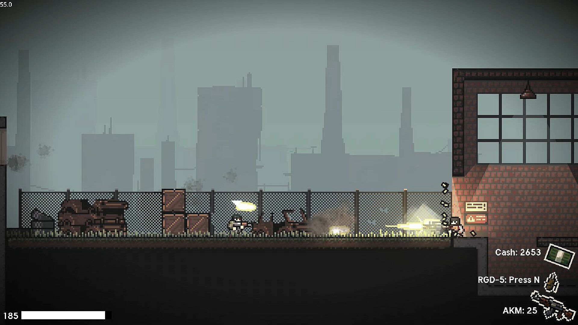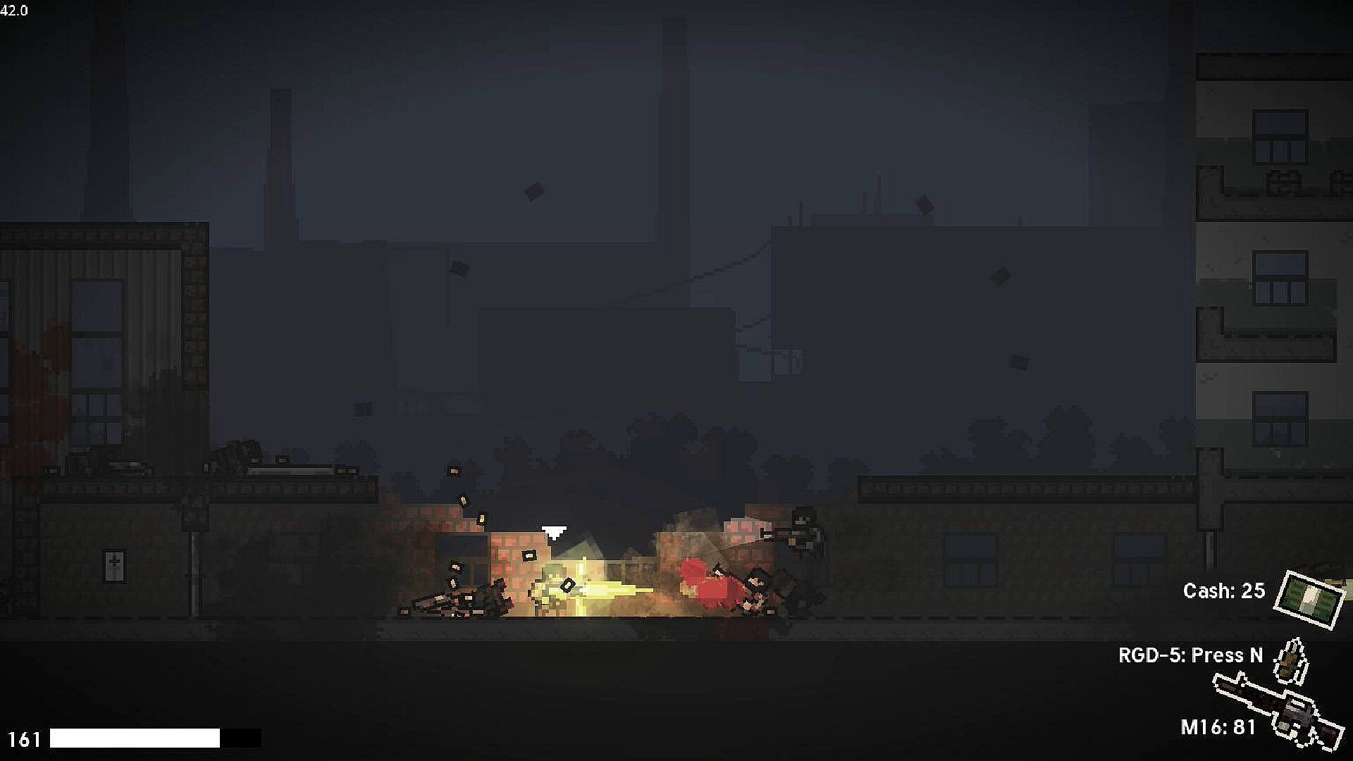 Blood Red Rebirth is an action-packed side-scrolling Cold War shooter where you run n' gun your way through the Peoples's Republic of East Dunavia, fueling your rampage by looting the dead for guns, cash and ammo.