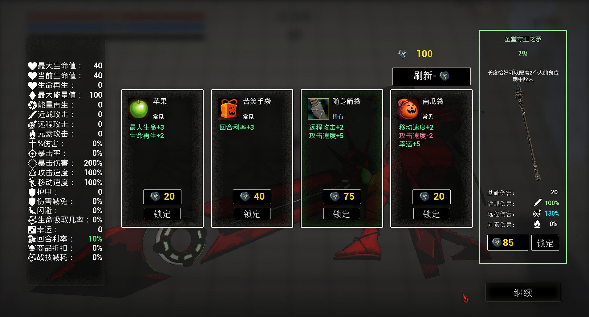 You can spend shards between waves to upgrade your stats, or get special effects that can change your battle style.