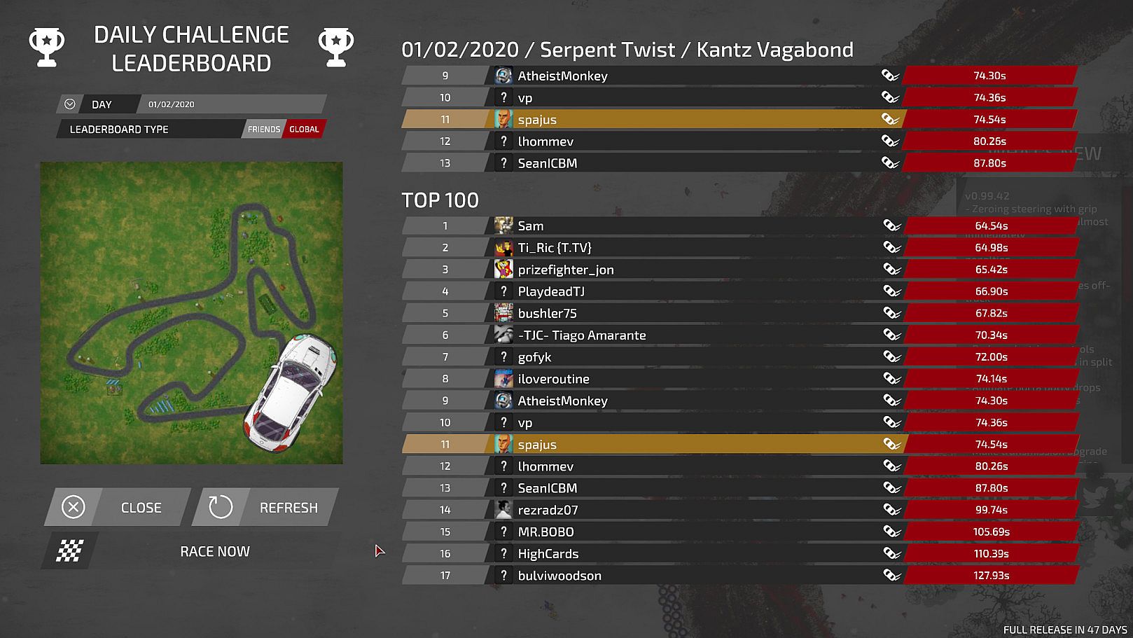 • Asynchronous online multiplayer via Ghost Replays in Steam Leaderboards - race against other people in Daily Challenge and Time Attack mode