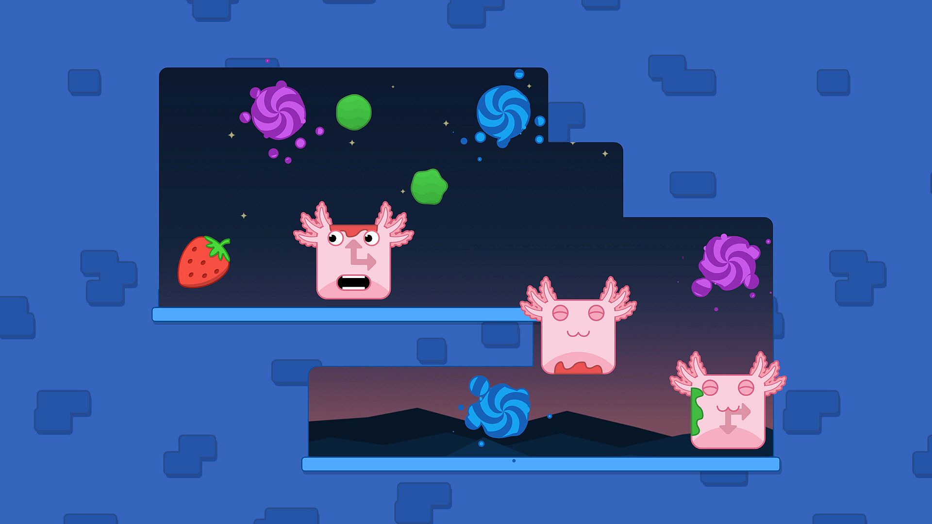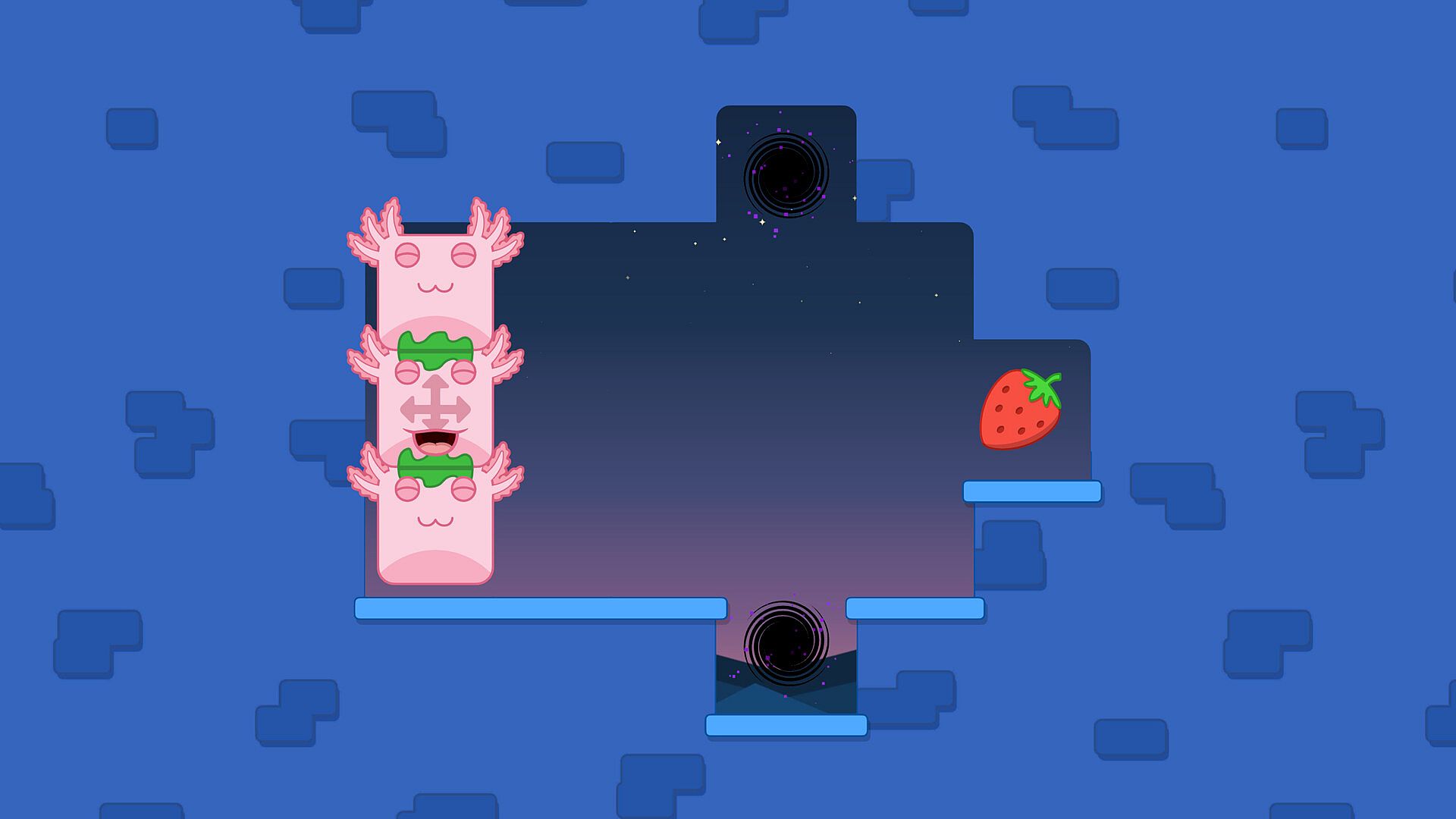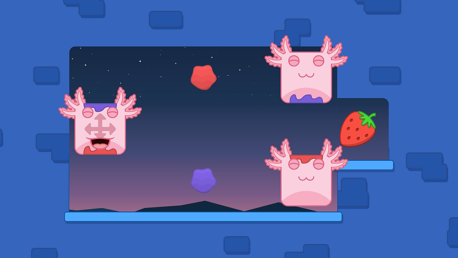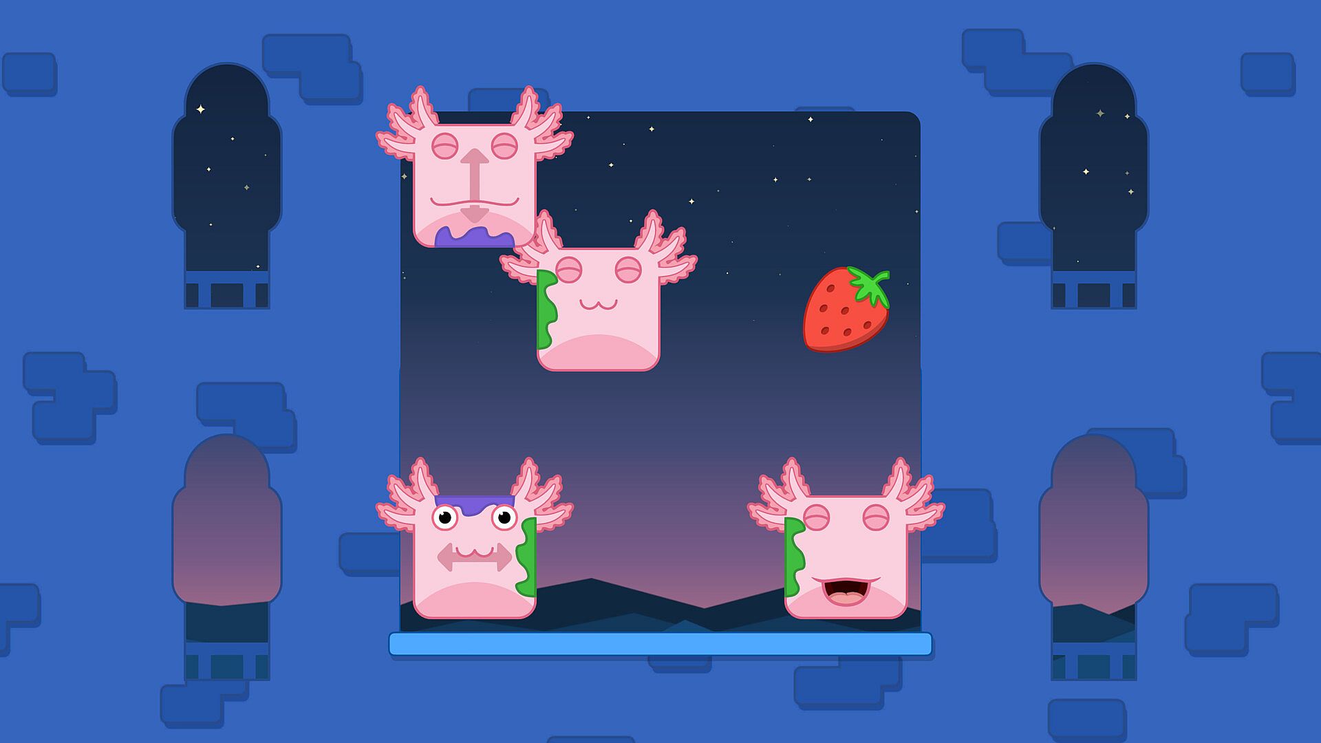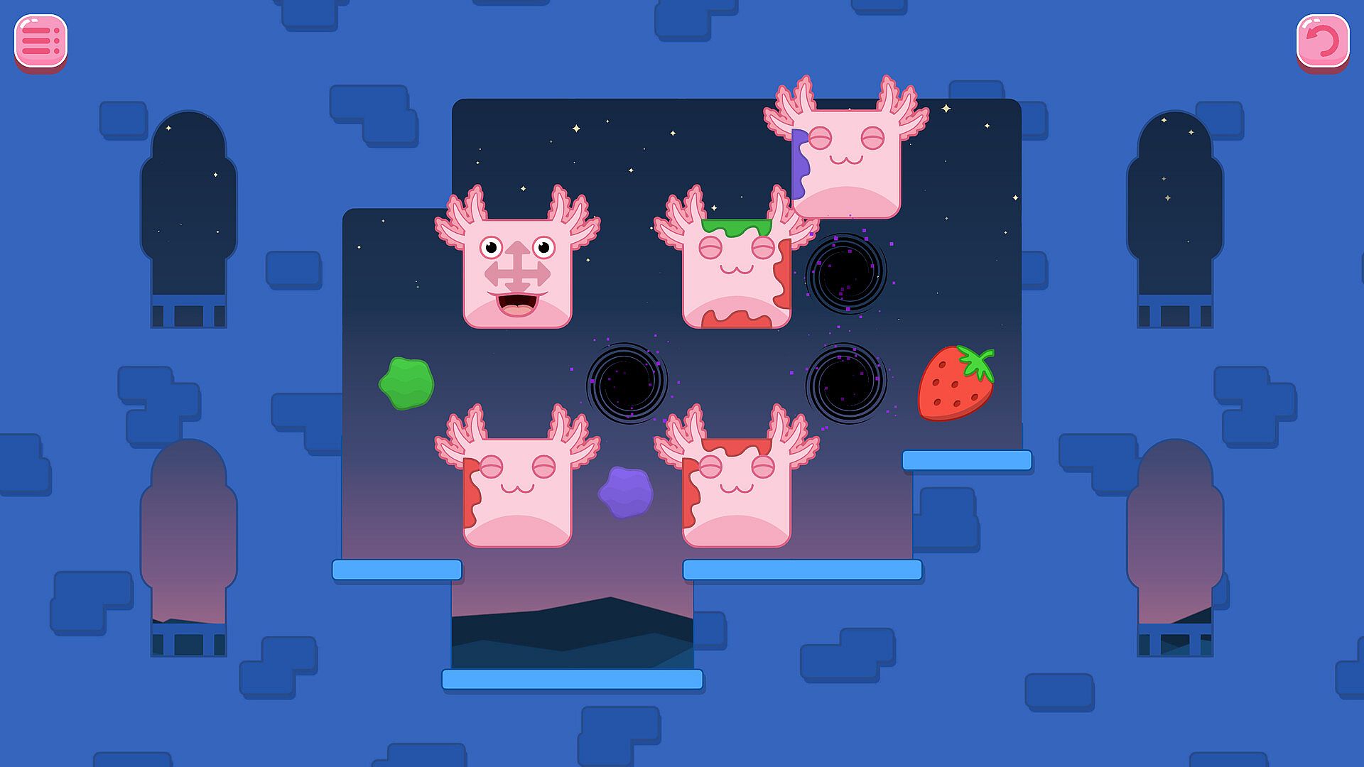 Bloxolotls are hungry by nature. Every Puzzle asks you to feed them some fruit. Yummy!