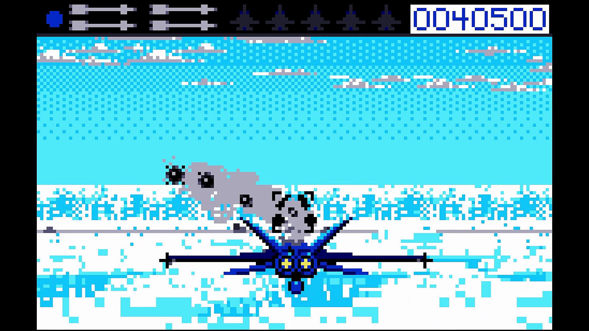 Armed with an 81 mm cannon and guided missiles, penetrate enemy territory and fly nine crucial missions. The Blue Lightning is capable of barrel rolls to dodge enemy fire, and is equipped with powerful afterburners that give a 10 second speed boost.