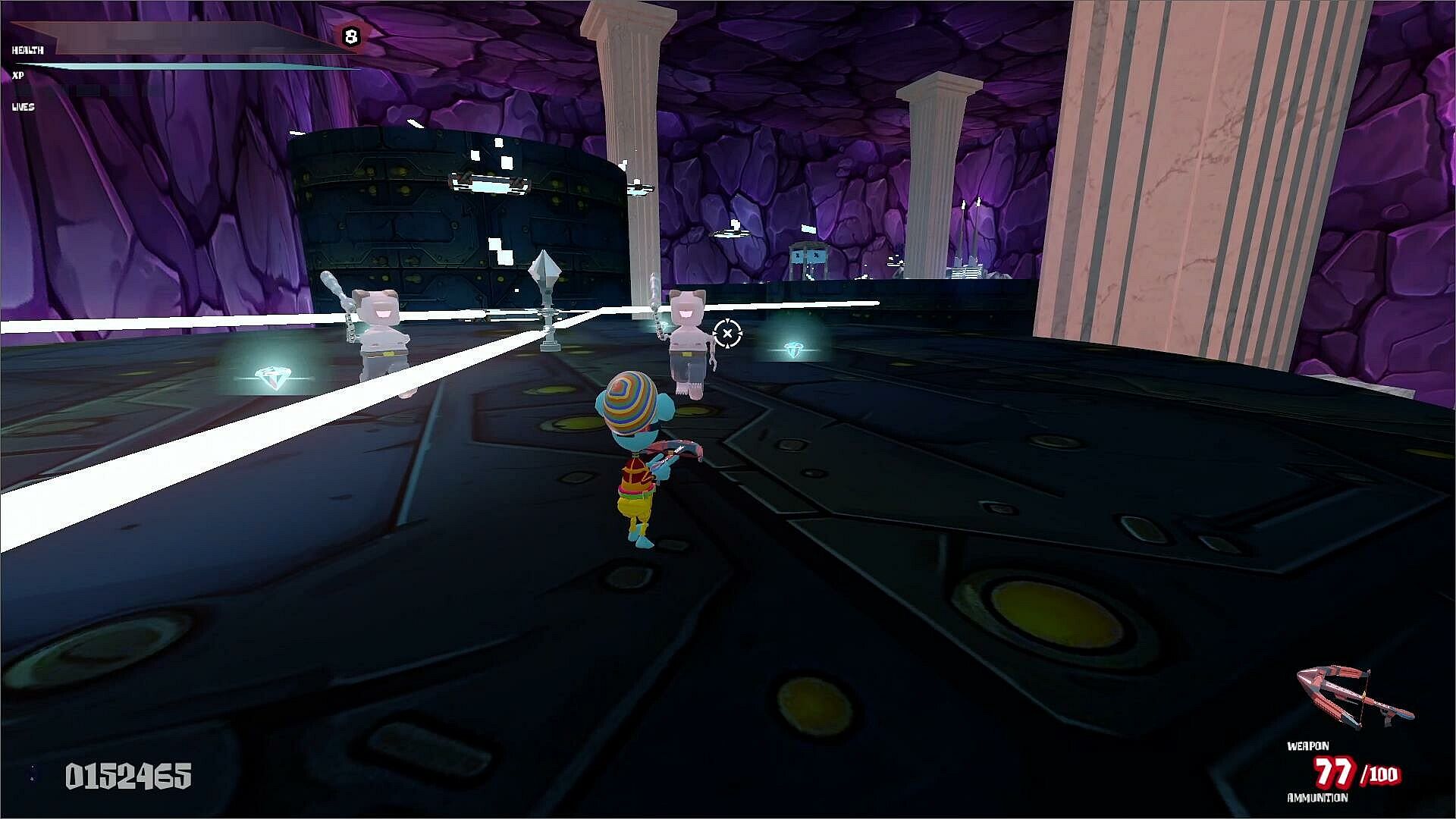 You're short of projectiles or you want to acquire new skills, no problem, we got you! Every level will have at least two weapon shops to buy projectiles for your weapons, or to acquire new skills, thanks to the diamonds you collected previously. Just collect as much as you can, some items might be expensive.