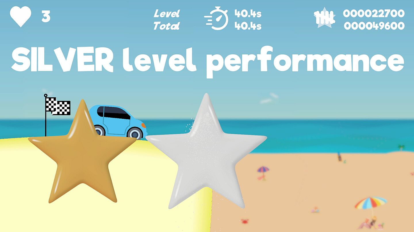 Play through 5 different environment stages made up of 20+ levels of gravelly fun with plenty of cool BMX moves, tricks, bonuses and hazards that change as you progress. Collect gold, silver and bronze stars based on your performance in each level.