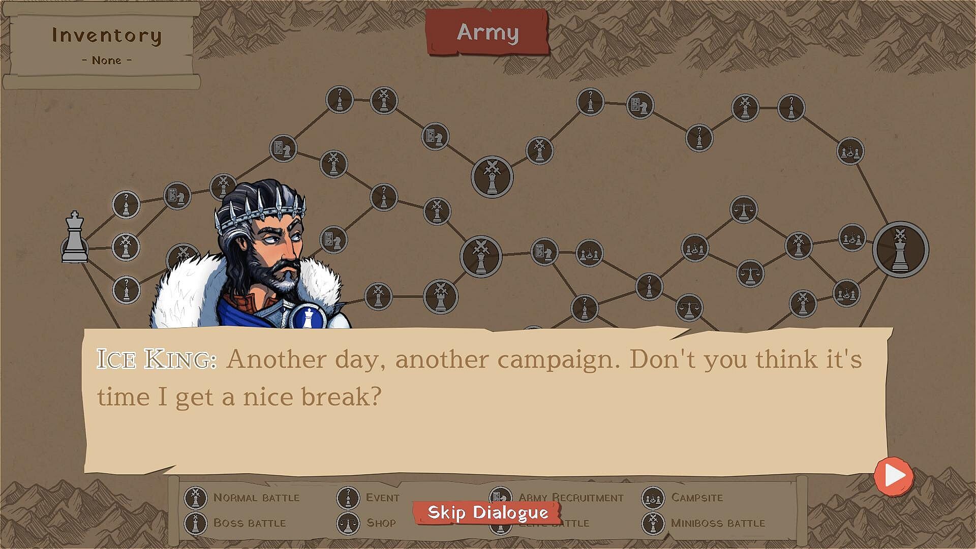 Grow a large, persistent army through your playthrough, managing and creating unique piece placements for each battle for each situation.