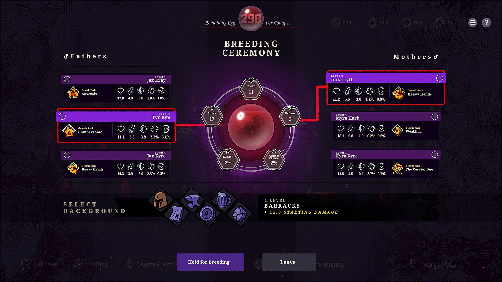 and create a new warrior. Your hero’s stats, gender, and genetic traits are shaped by