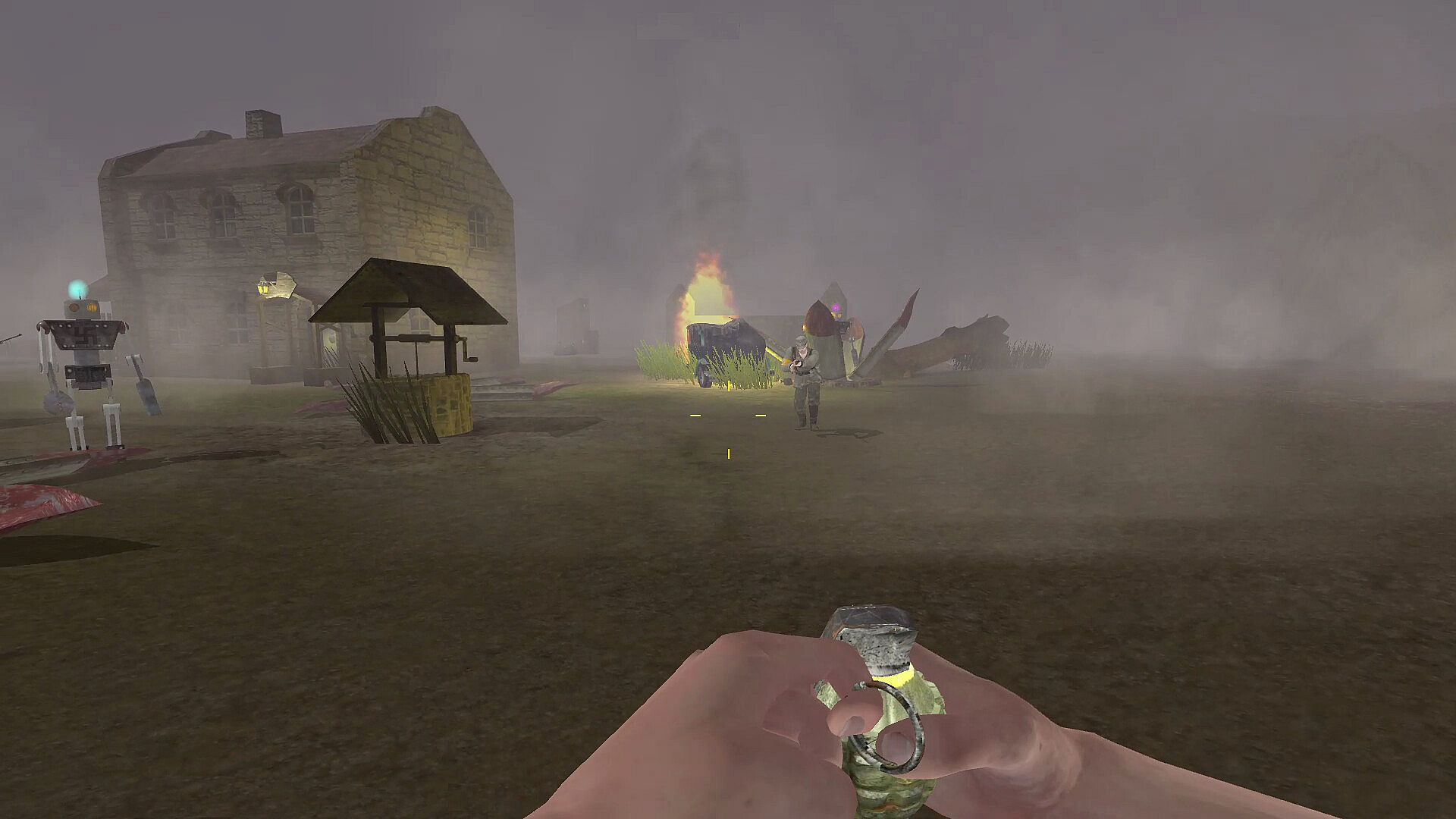 • "Nazis in the Mist" - Although the title of this package of mini-games is "BOAT RACER", I think this mini-game is the crown jewel of the trilogy. An arena style game with randomly spawning enemies where you try to survive 10 rounds. The story behind the "spawn pods" comes from the larger project still in the works that all 3 of these mini-games were borne from. The Nazis have developed secret weapons that could change the tide of the war and your mission is to capture the blueprints. One such secret weapon is the "STD"  ( Subterranean Troop Deployment ) which is a torpedo like missile that burrows through the ground and pops up on the battlefield. Another secret weapon are Autonomous Super Soldiers ( Robots) - which you hack to be on your side in the fight against evil. That "helper" Robot is also available in this mini game but you can toggle him on/off if you wish to go it alone. Good luck with that! You don't get points for the helper's kills, but he will be a great help in getting you further into the game. Only 10 rounds sounds like a cakewalk but it's actually quite difficult to complete the mission. In many  MANY hours of play testing, I have only succeeded in surviving all 10 rounds ONCE. Steam Leaderboard ranking also available for this mini-game as you can upload your scores even on failed missions. If you see a leaderboard score that seems VERY high - it's because they accomplished the mission - all 10 rounds - and got a 10,000 point bonus