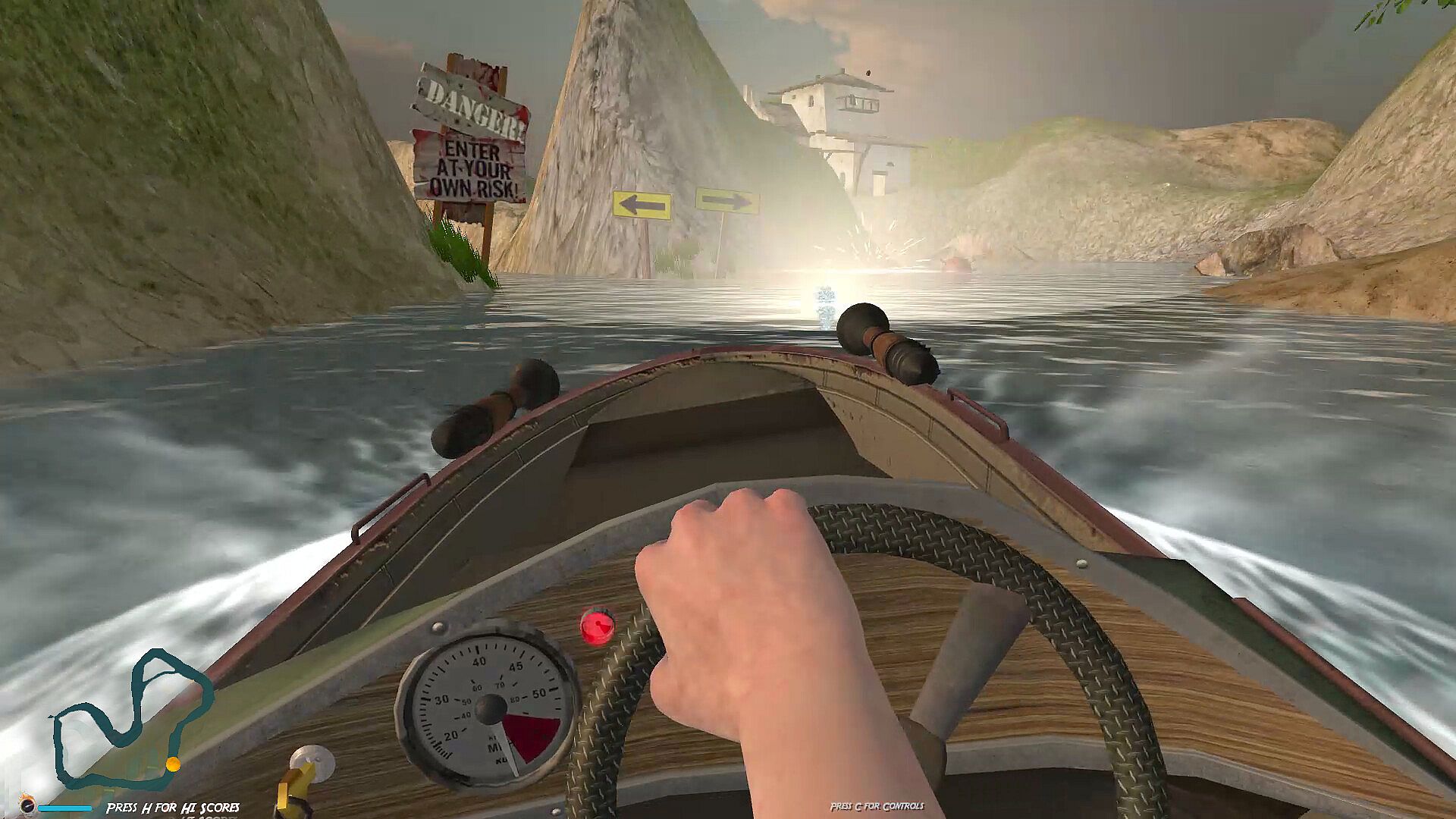 • Featured: "Boat Racer" -  A 3 lap timed race fraught with exploding hazards that you can avoid or shoot with your onboard cannons for time boosts to your turbo charged engine. Takes about 1:20 to complete but VERY high index for replay-ability as you hop back at the start line ready for the next race to try to beat your best scores. Obstacles spawn randomly each game so every race a bit different. Steam Leaderboard ranking available on this game to compare your results with other players