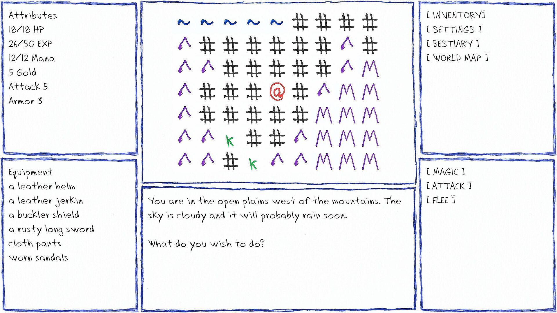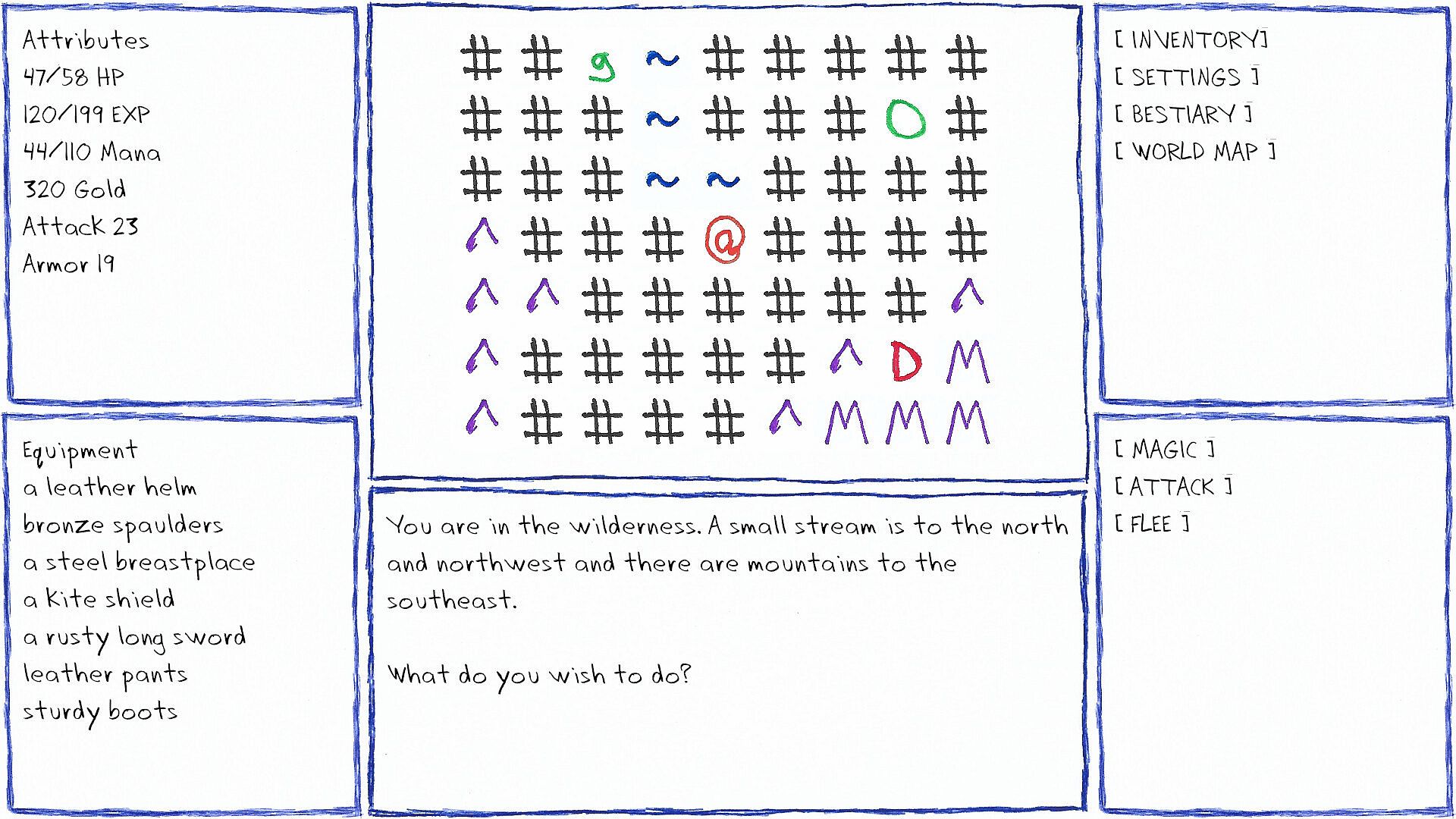 Boli is a retro-style JRPG with hand-drawn ASCII art inspired by 1980s classics like the original Dragon Warrior (Dragon Quest) and text-based RPGs such as Rogue and Moria. Explore the world as a solo adventurer, fighting or avoiding monsters and building up your skills and equipment to survive the treacherous monster-filled forests.