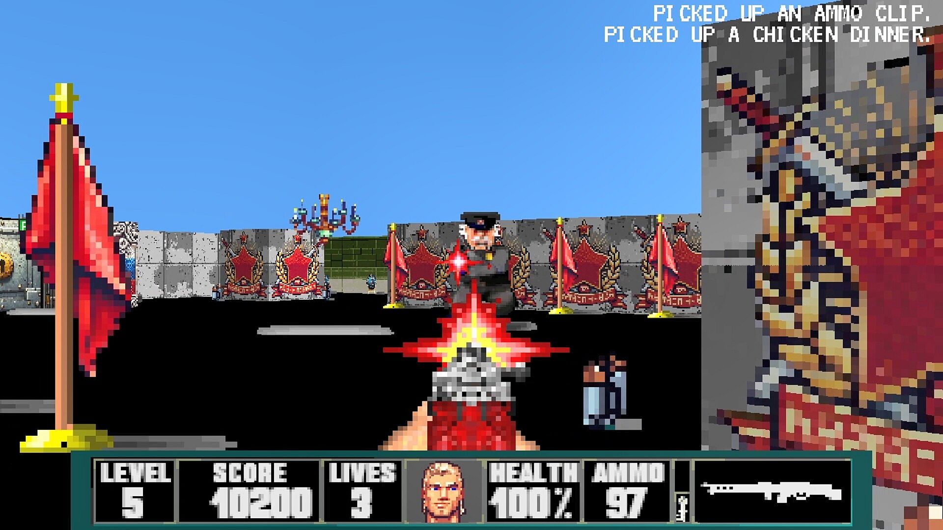 Bolsheviktion 3D is written from the GROUND UP in pure C using a reimagined and enhanced implementation of John Carmack's original raycasting method. Full software rendering!