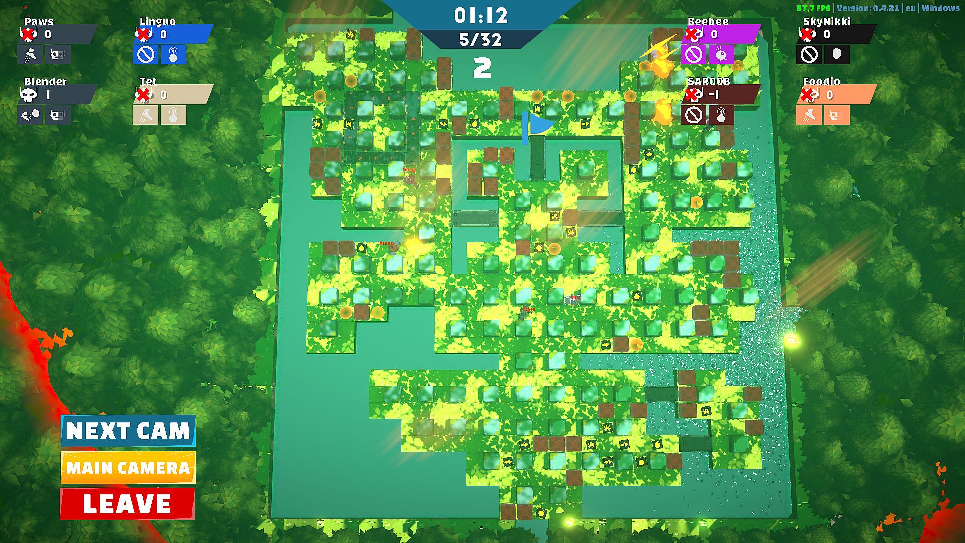 Join the fierce online competition and be the last Bomb Bot standing in matches with up to 32 players.