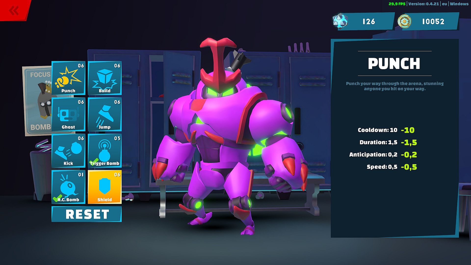 Create your very own Bomb Bot by unlocking more and more parts while you progress and select your favorite loadout before heading into the Arena