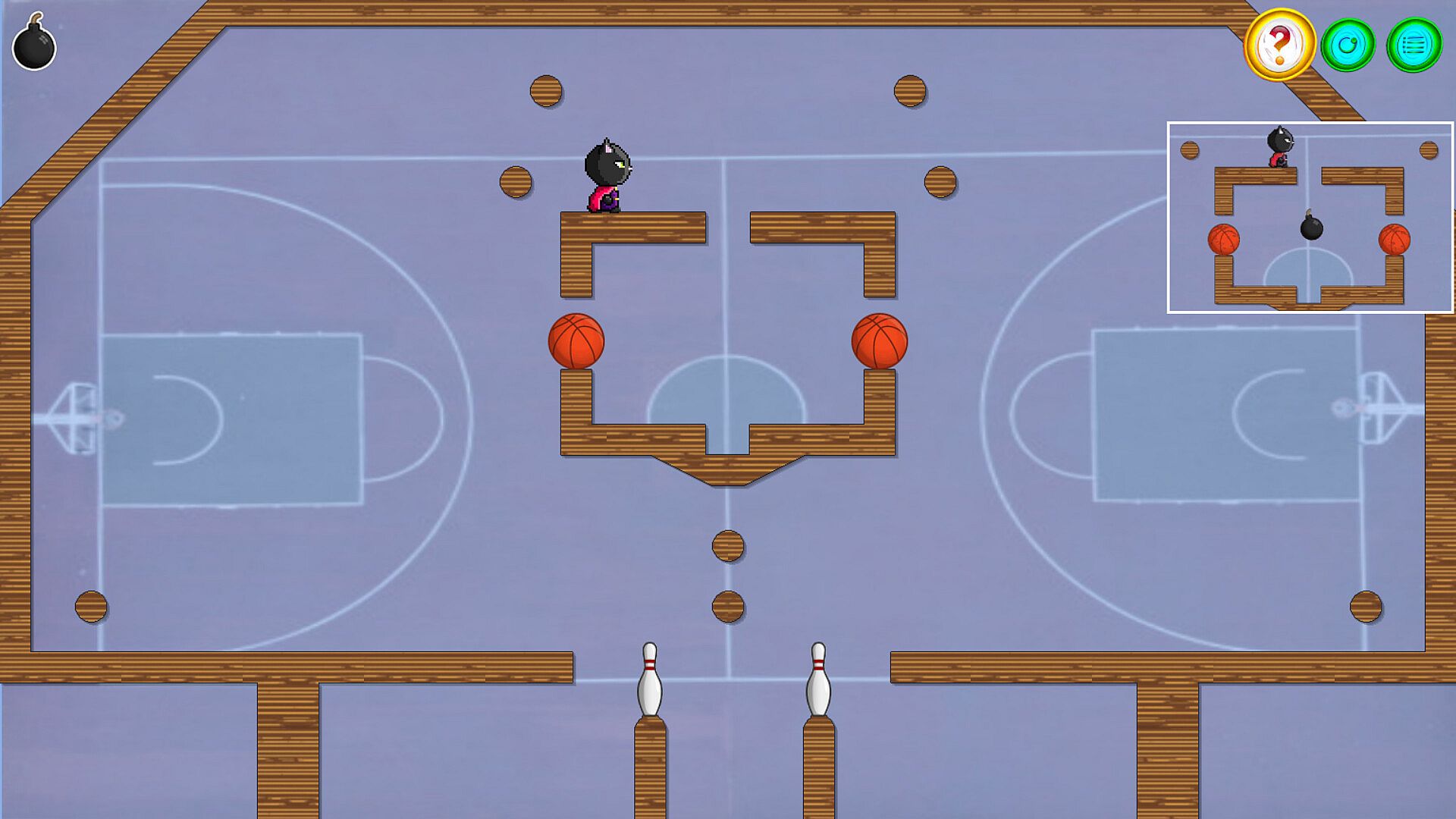 It has only a few bomb charges, as well as bowling balls, basketballs and your skill and ingenuity.