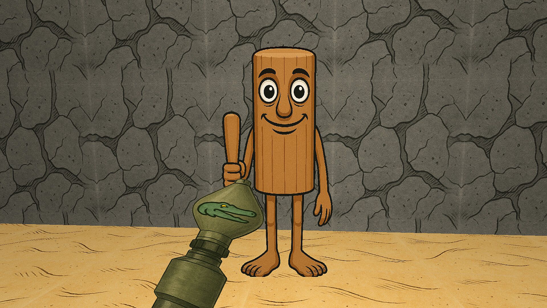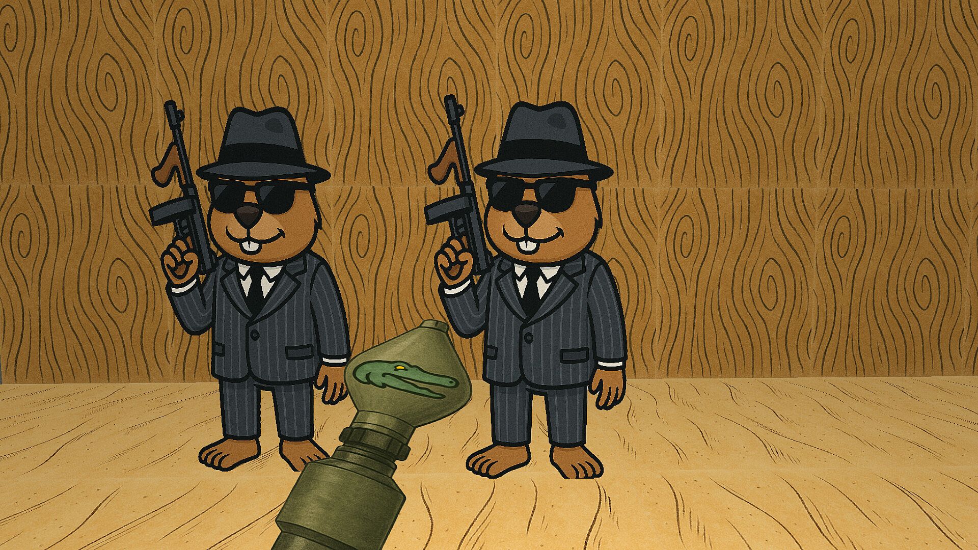 With a torn-off military satchel full of explosives and a mouth perpetually contorted with a malevolent grin, the crocodile bomber stomps around on his clawed paws, wreaking havoc and anarchy. He throws bundles of homemade bombs with such force that the explosions shatter glass in neighboring levels. Sometimes he swells, hisses, and transforms into a living bomb himself, hurling himself into a crowd of enemies (or the player) in the style of a final act of rage.