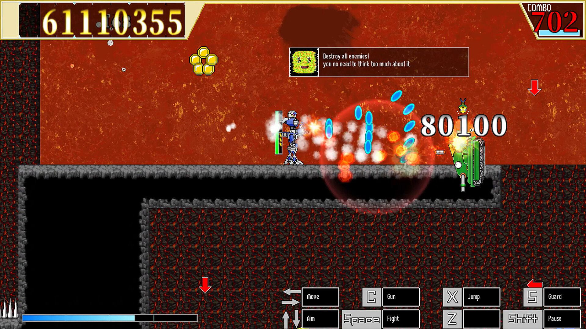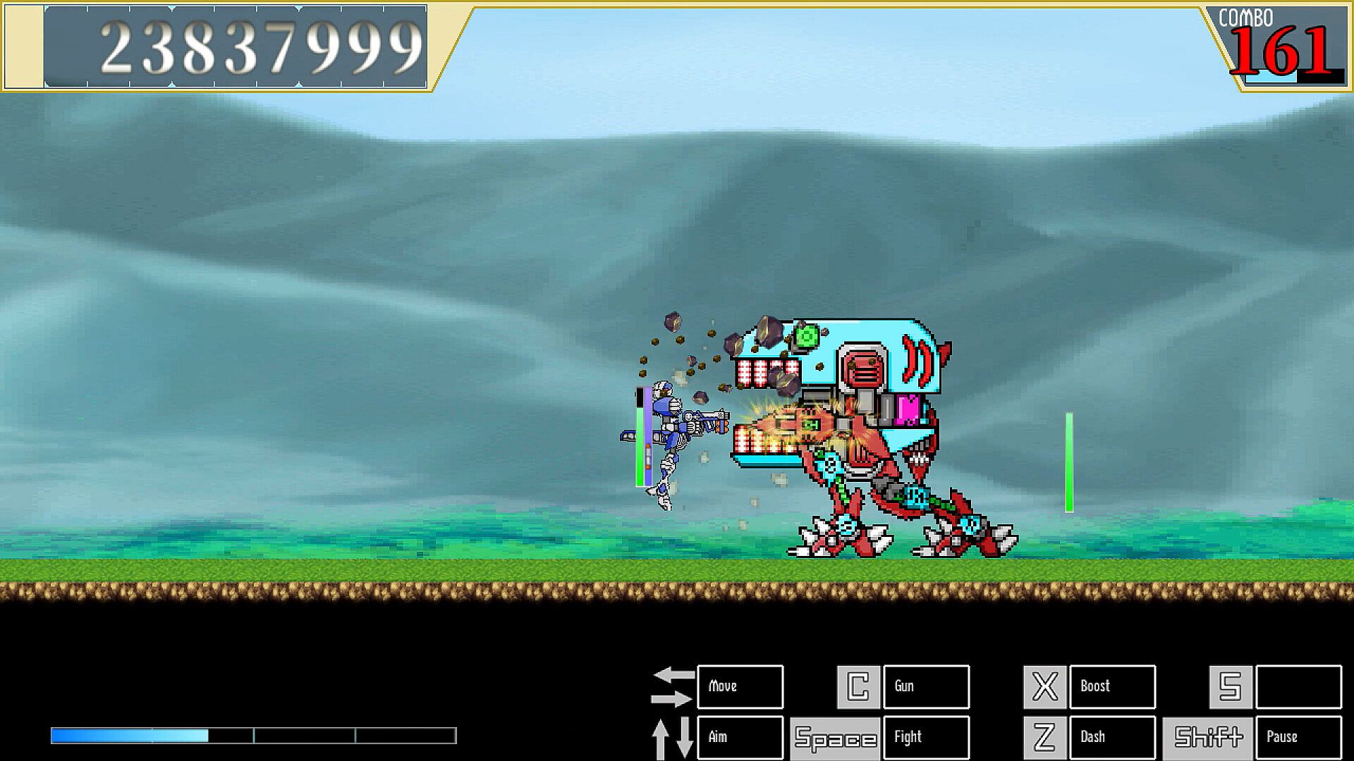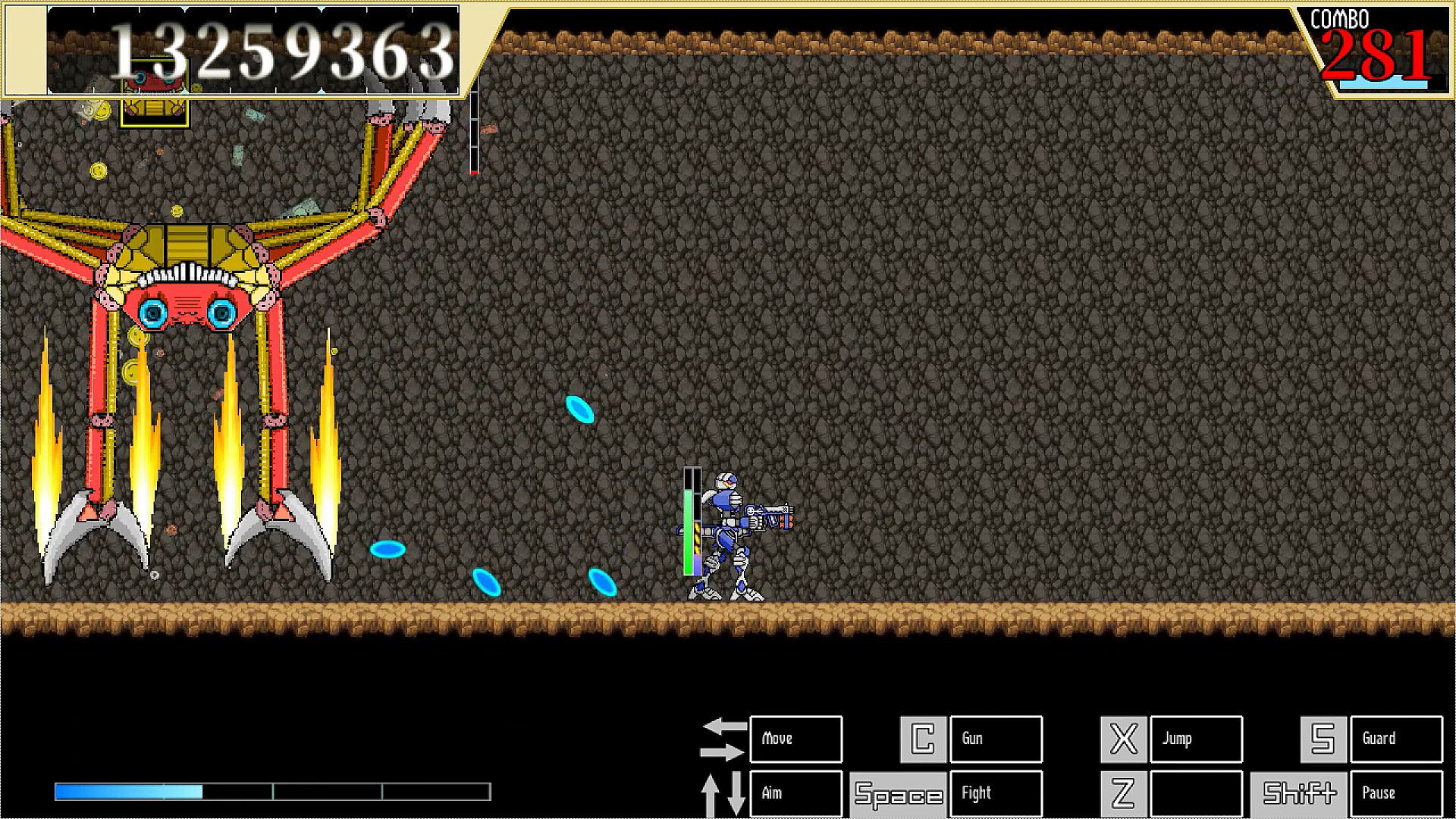 This is a 2D side-scrolling action shooter where you take control of a heavily armored mech and blast your way forward.