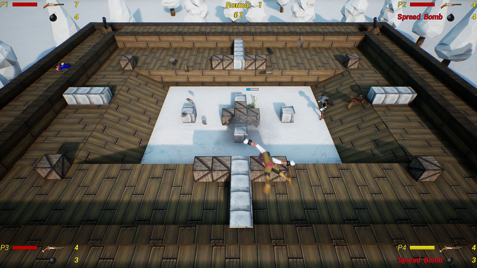 Bombo Rumble is a 4 player local - multiplayer game where you throw bombs with physics at your foes.