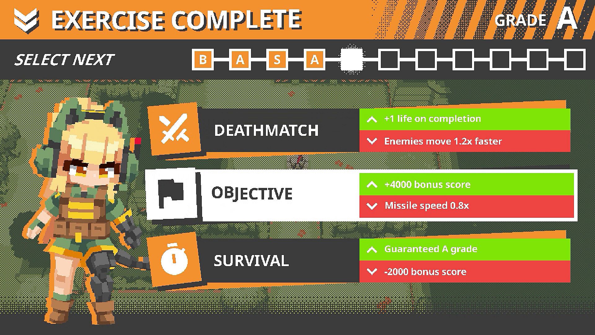 As a cadet at Bombshell Military Academy, you'll take on a series of themed testing courses each with their own unique environments that change the style of combat!