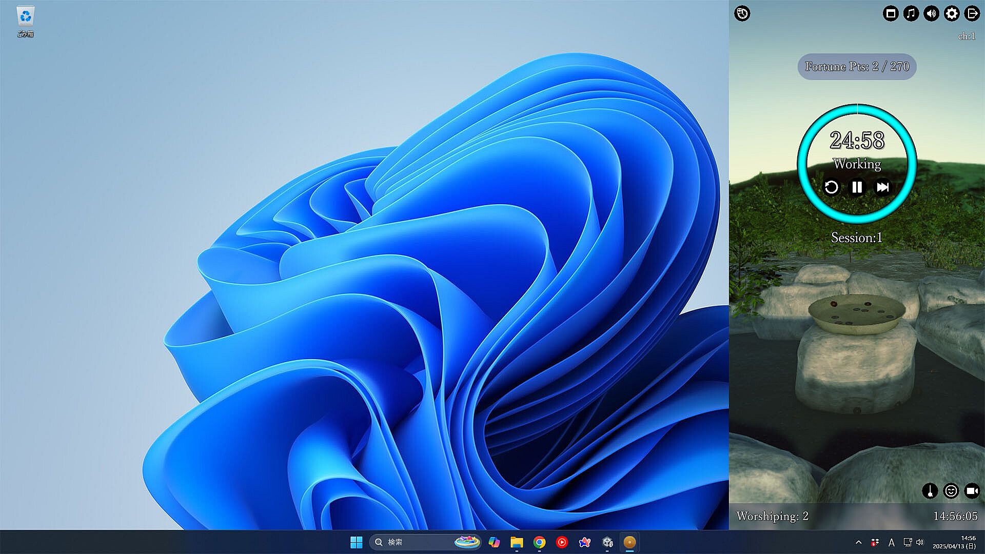 Purify a 5-yen coin and gently toss it towards the central dish. Successfully landing it on the dish grants you Blessing Points. As you accumulate these points, the scenery on your screen becomes progressively more vibrant and beautiful.
