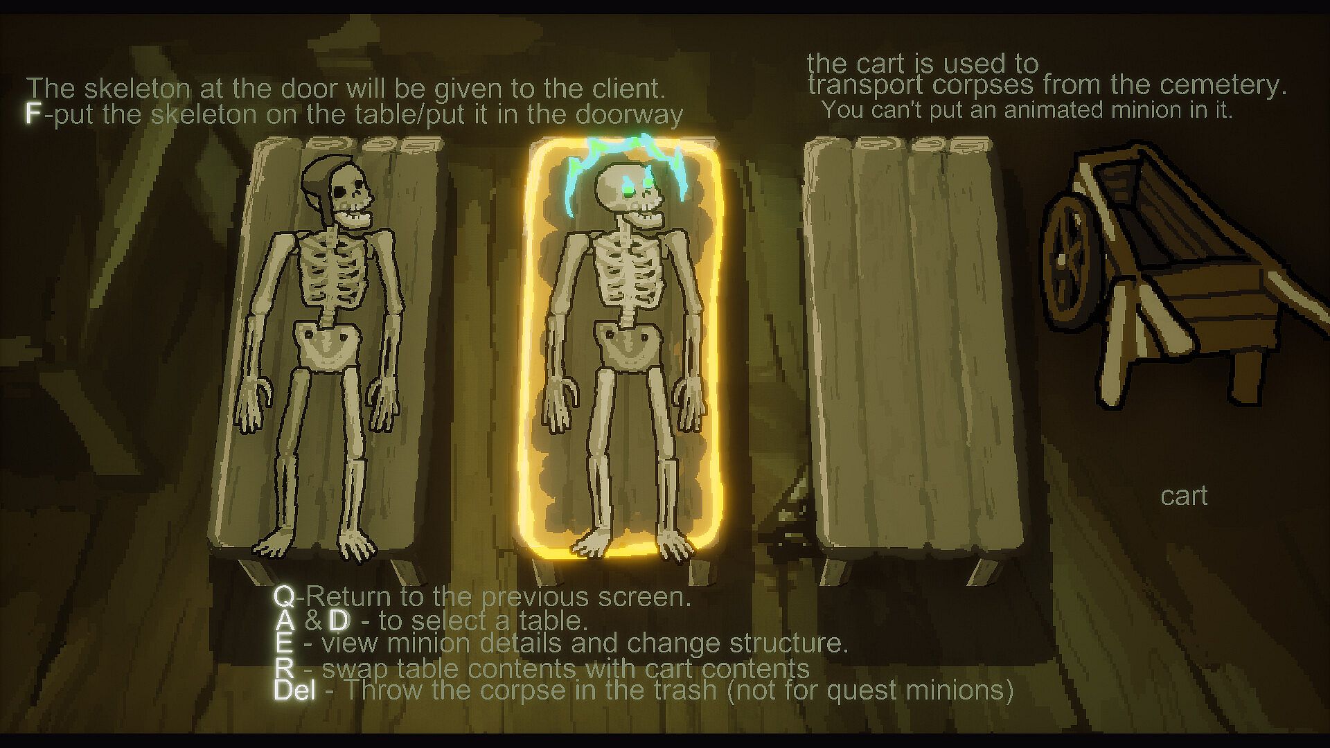 As the head of a bone repair shop, you have to repair skeletal minions. During the day, you serve customers and repair their skeletal minions, and at night you search for high-quality body parts in the human's kingdom graveyard.