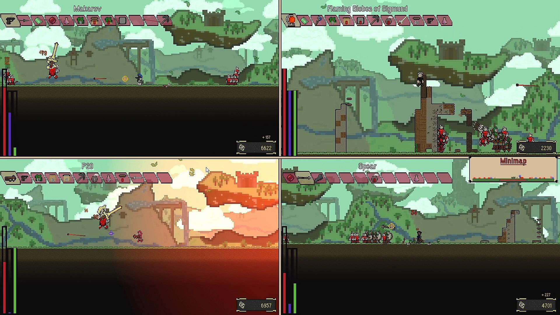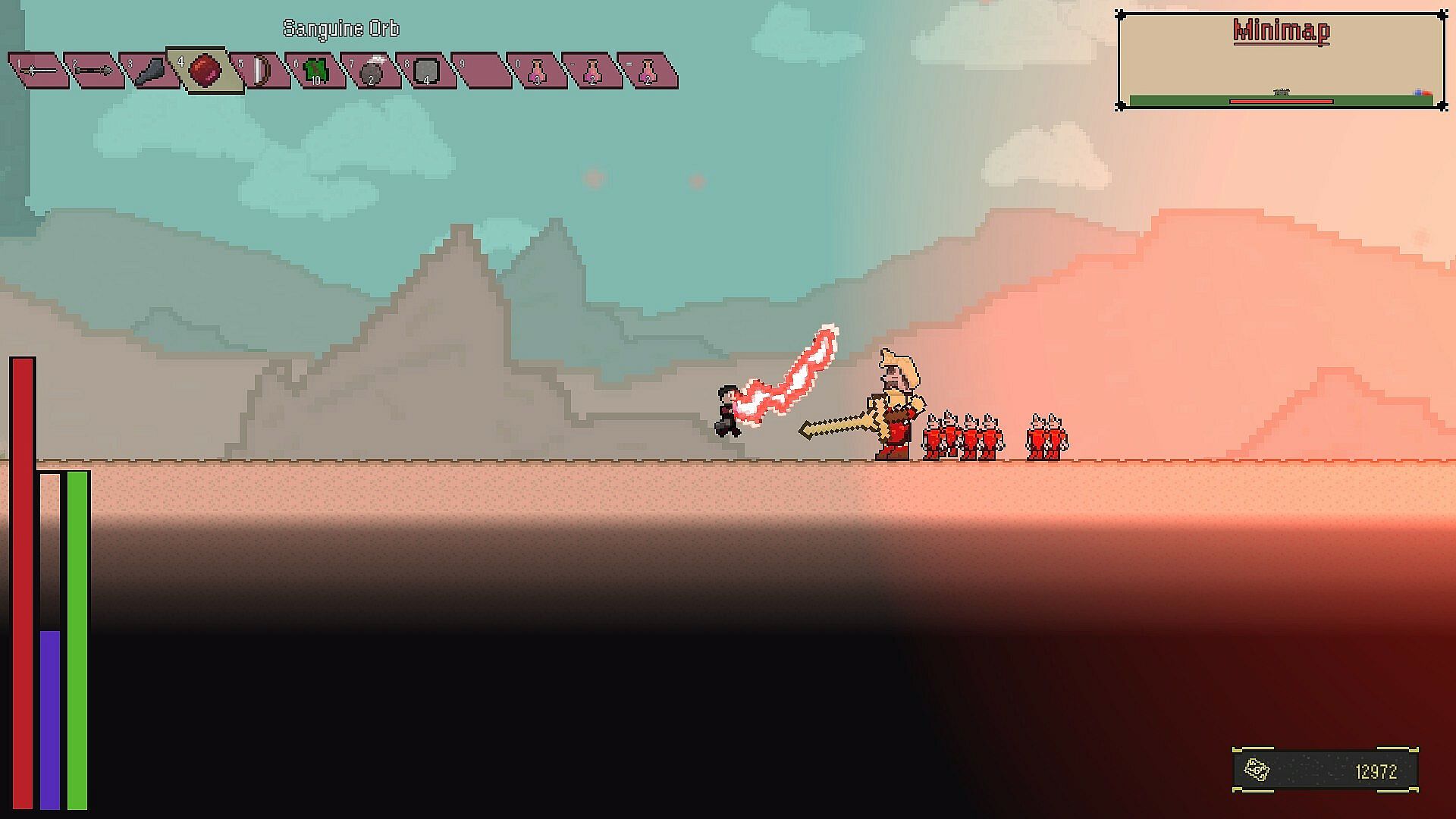 Dodge to move and gain invulnerability frames! Hit enemy attacks with your own to deflect & clank with theirs! Break down enemy poise to stagger them and go in for the kill! Every weapon has both a regular attack and a special attack, allowing for a wide variety of skill expression! Even dodge into the ground to wavedash and gain massive speed - we have it all!