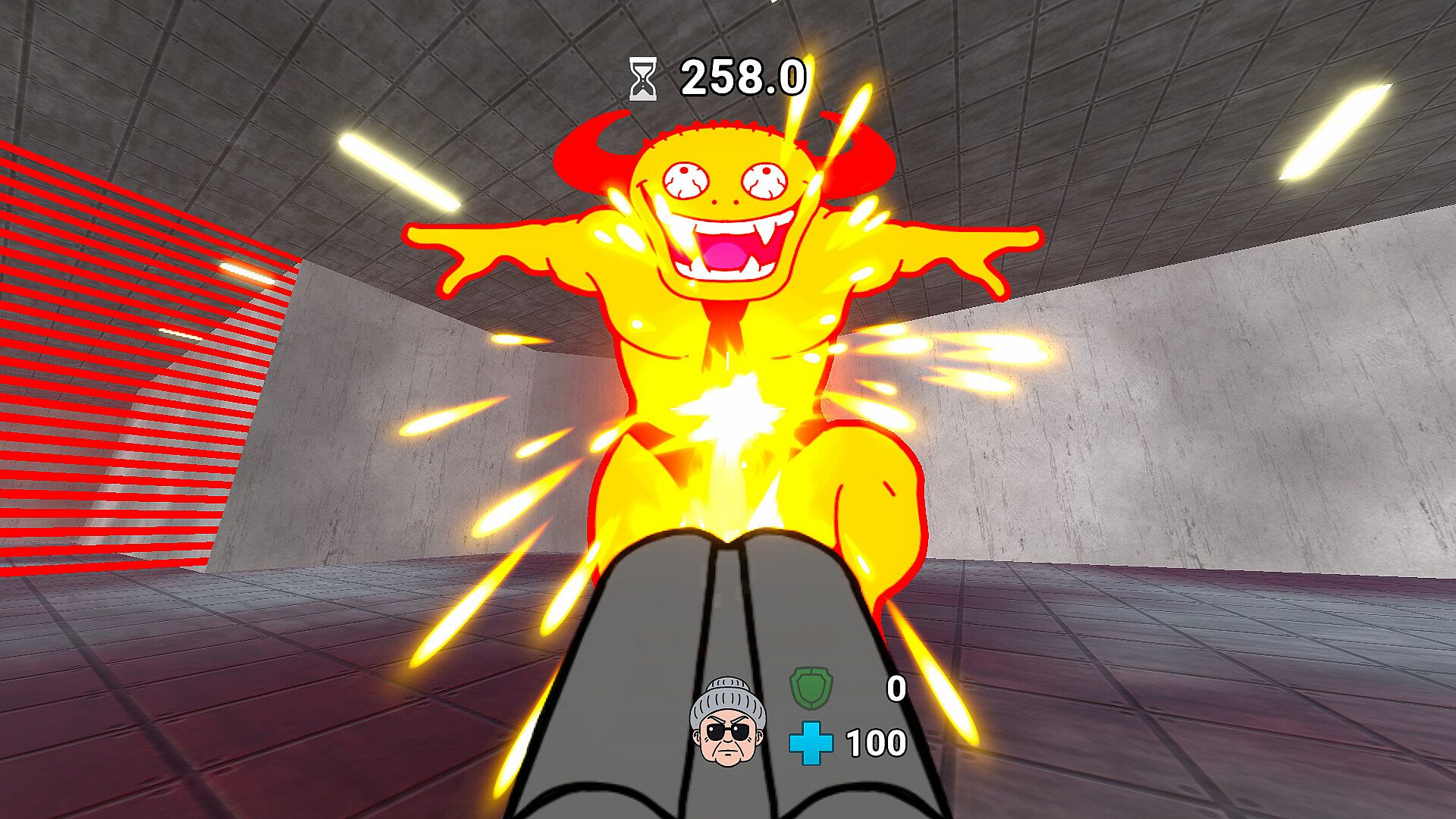Shoot, dodge, and defeat demons! This FPS condenses the basic elements of the genre into a small package. As "Boomer Grandma," the legendary demon hunter, you have once again descended into Hell. Your mission is to rescue your grandchild, who has been kidnapped by the Demon King.