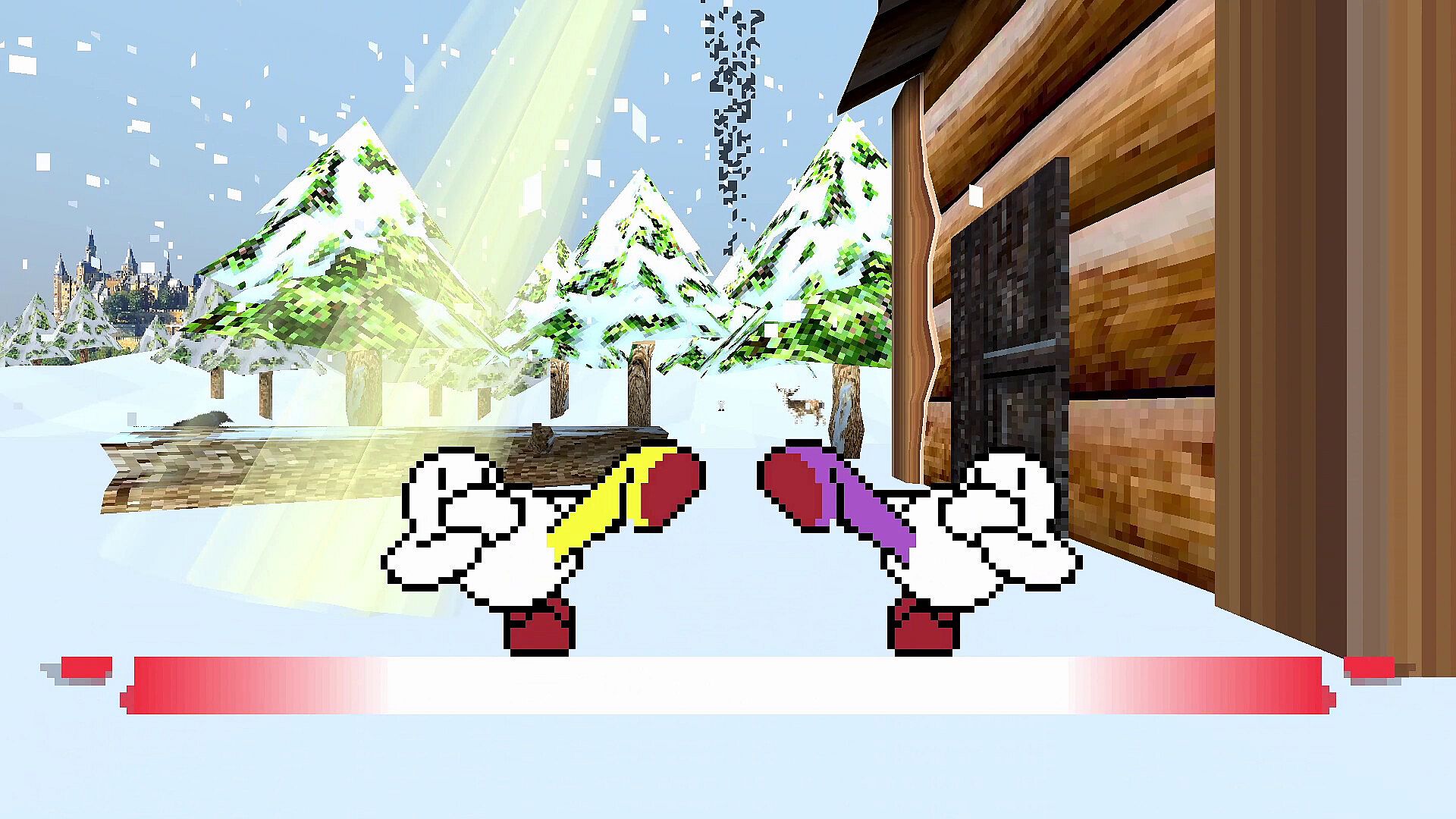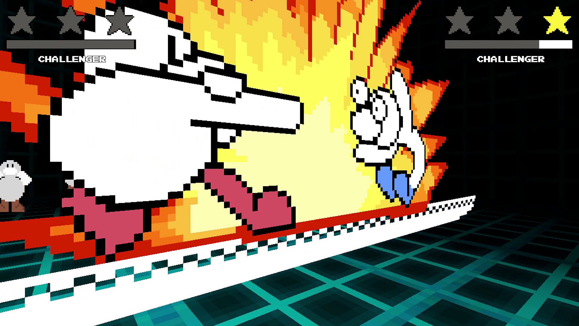 Complete various in-game goals to earn in-game currency to unlock various cosmetics, art and music! Have an enjoyable completionist experience supplemented by detailed checklists as you work towards 100%. Speedrun timers for singleplayer modes and other challenges help you focus on the fight as you go for faster and faster times! From the opening moments of the game to the credits, get down to some infectious tunes reminiscent of simpler times!