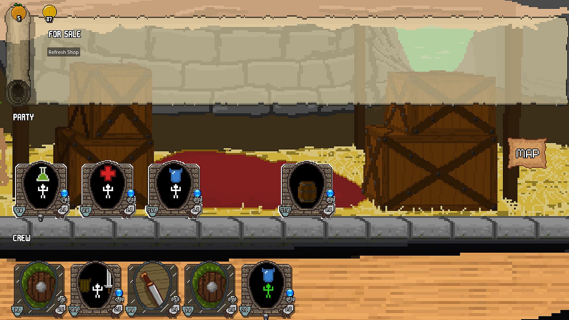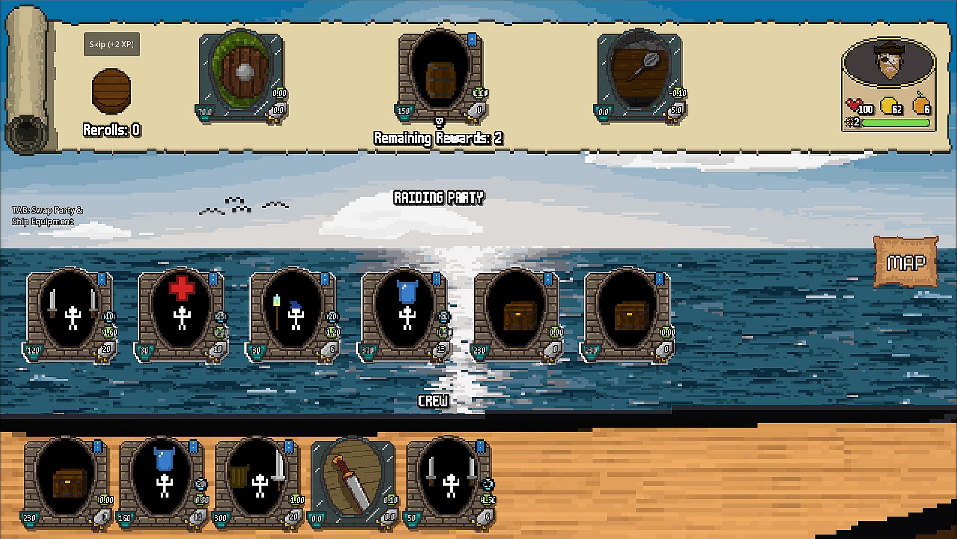 From among the pirates you have collected, only 6 may participate in combat. These booty battlers will fight tooth and nail for any chance at loot, and will do so of their own accord.