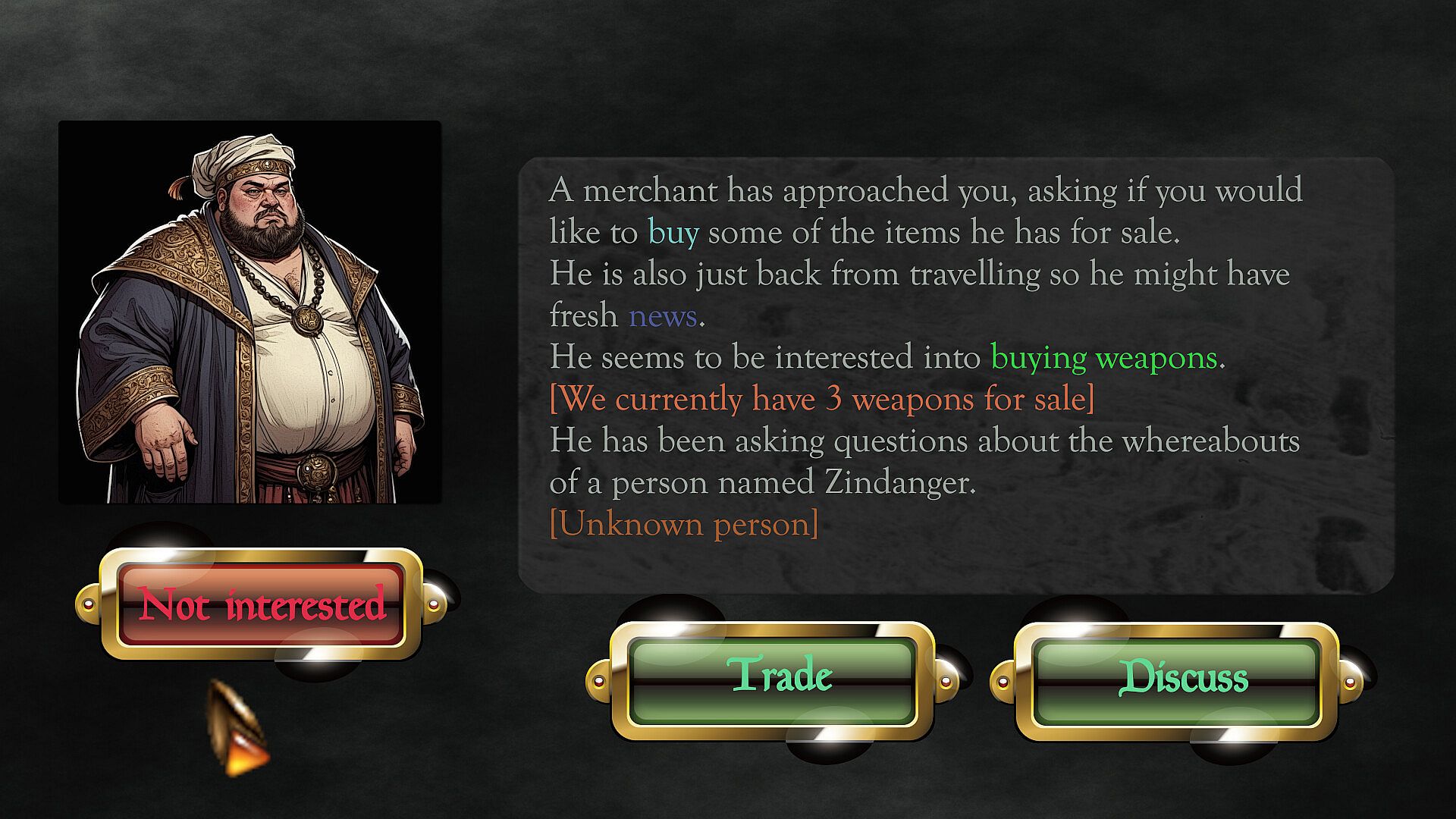 Proper logistics management is key in your business, and you would not want to run out of food or drinks during the birthday party of Thrall the Slayer or when the well known group of assassins "The Butchers Boyz" have decided to honor your establishment with their presence. Here, as always, money is not everything, and the quantity and quality of your supplies will depend upon your good relations with some of the local villagers, so make sure you don't turn them away or send them home unsatisfied.