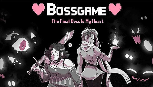BOSSGAME: The Final Boss Is My Heart is a game by Lily Valeen (designer, programmer, writer & character artist) featuring background art by Chloe Taylor, music by RoccoW, and guest illustrations by Iva, MakioKuta, Emma Jayne, Iasmin Omar Ata (Delta), Sophia Foster-Dimino, Casey Nowak, puré, and Max Schwartz!This game is for mature audiences. It contains crude language, fantasy violence, religious imagery, and frank discussions of queerness and anxiety.