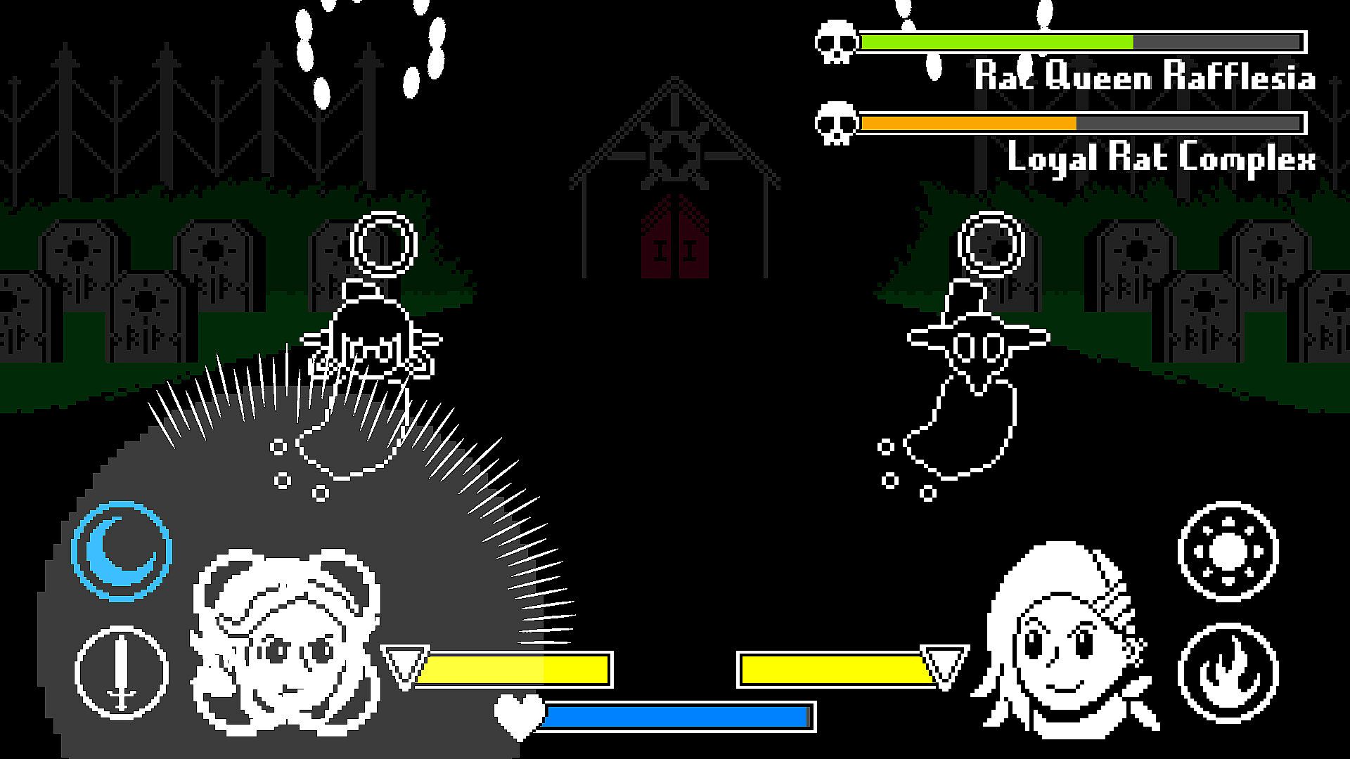 Mammon City can be a rough place to live. Devils are everywhere, and the only decent job in town is hunting them down. Take charge of Sophie, sword priestess and generally anxious mess, and Anna, fire witch and localized disaster, as they fight, flirt, and try to pay the rent. Hunt horrifying devils, confront your corrupt employer, uncover the dark secrets behind Mammon City, and prove that evil doesn't stand a chance against the power of girlfriends.
