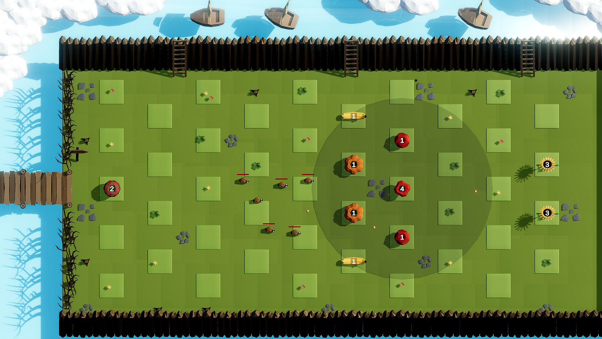 • Many unique plants: - You place fruits and vegetables all over the map finding the best positions for an effective defense. Combine their strengths to make them even stronger.