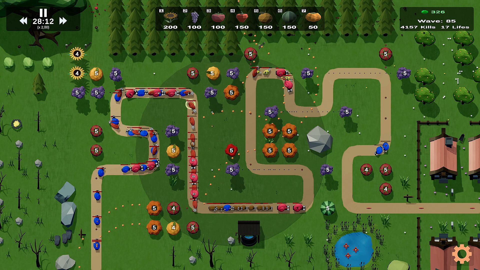Defend your maps from waves of evil snails by placing fruits and vegetables in strategic spots. Build effective defenses with a range of unique plants, then upgrade them up to level 5 to boost their power. Combine plant strengths and pick enemy power-ups every few waves to sharpen your tactics in this casual tower defense game. Snails vary in size, speed, and health, growing tougher as levels progress. Tackle diverse maps featuring teleports, blocking paths, and more, across modes like Destroy Crystals (easy or hard) and Endless. Strategy fans who enjoy indie challenges will find plenty of tactical depth here.