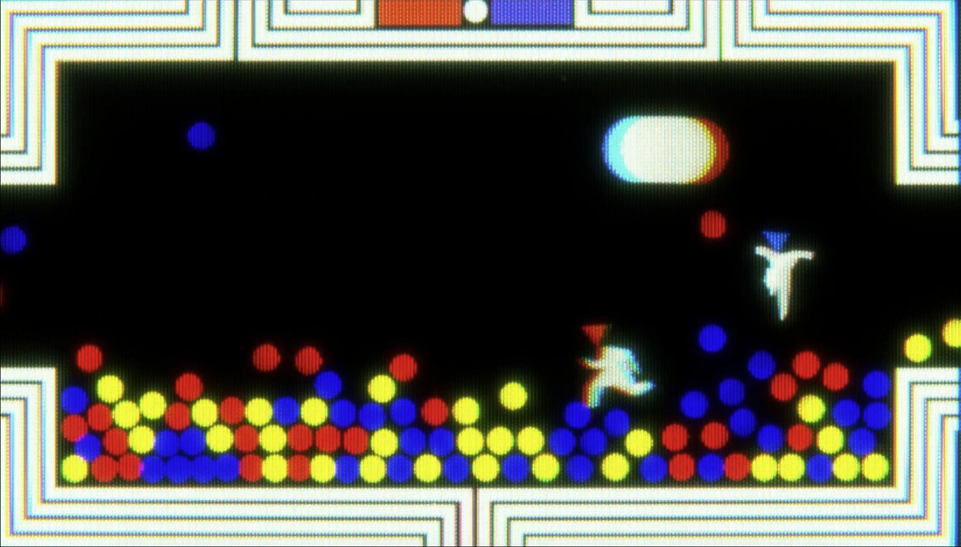 Finally, a frame delay colour separation method adds an extra level of flavour that is a perfect match for the fast paced gameplay of Bounce 2. The faster the ball or player, the more exaggerated the effect.