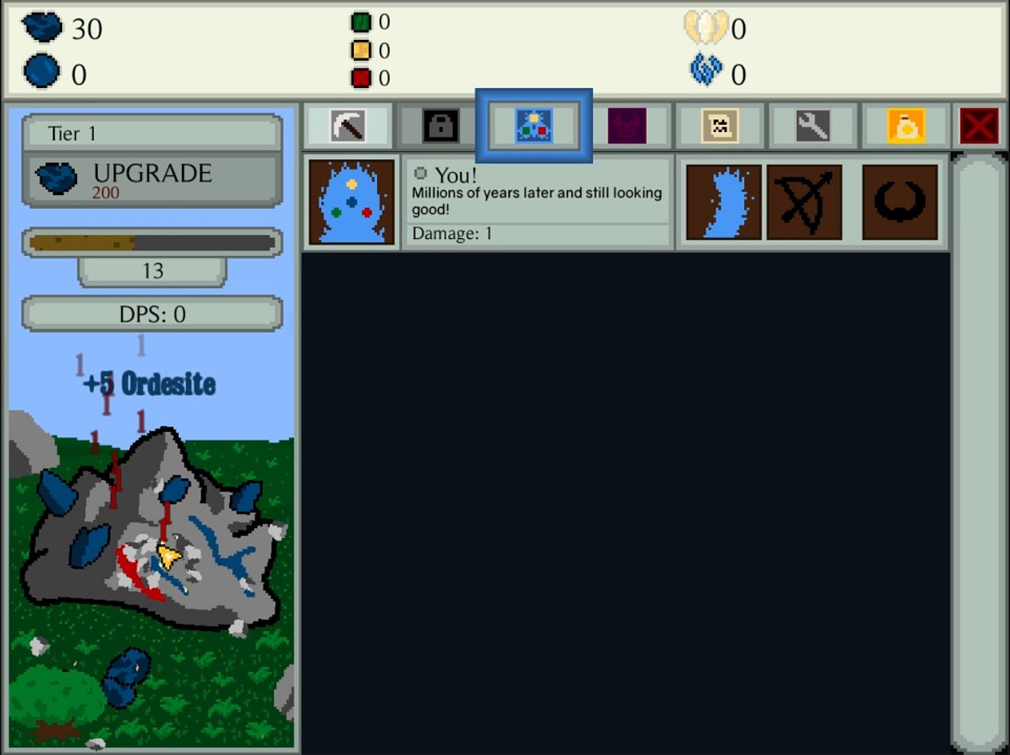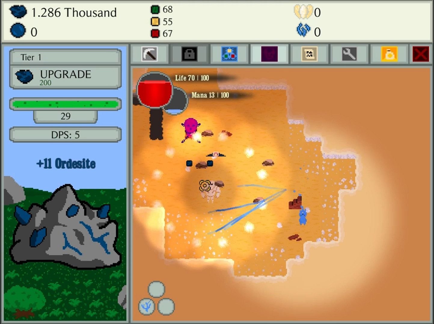 The dungeon of bounty below is a top down twin stick roguelike! While your units mine rocks for you, you can delve into the dungeons mode to rake in additional ore!
