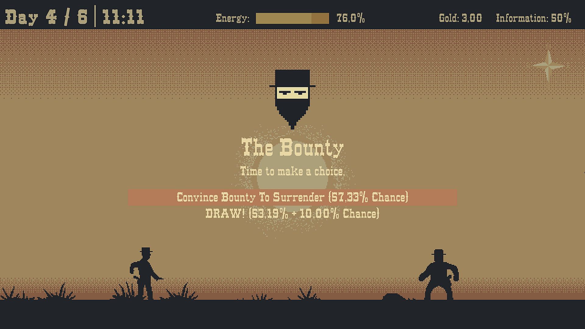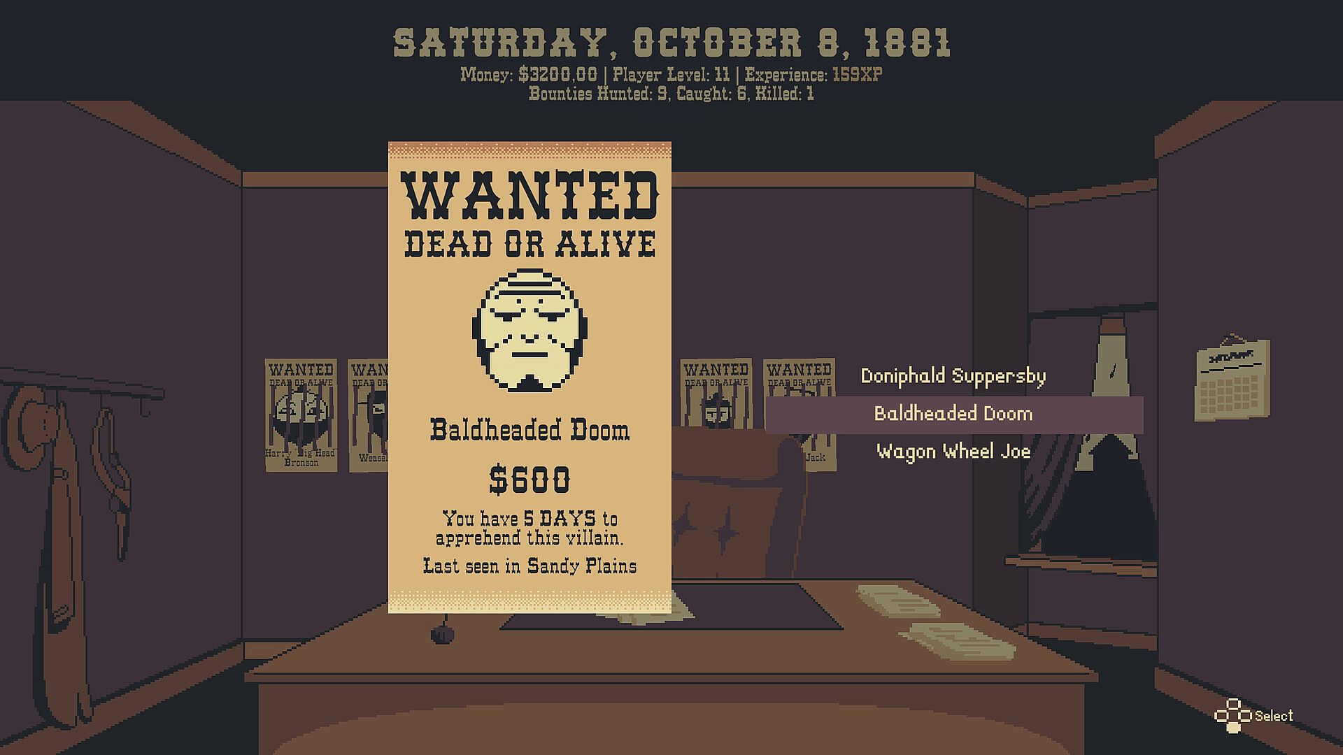 It is the fall of 1881 and your bounty hunting agency is in dire straits. Your no-good partner, Edward Thorne, took out a $10 000 loan and then took off. The debt must be paid by the end of the year so you’ve got no time to waste. Pick a target from the board, mount up, and set out on the bounty trail!