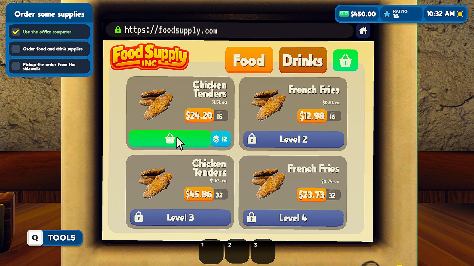 • Level up to unlock new menu items purchasable from your office computer