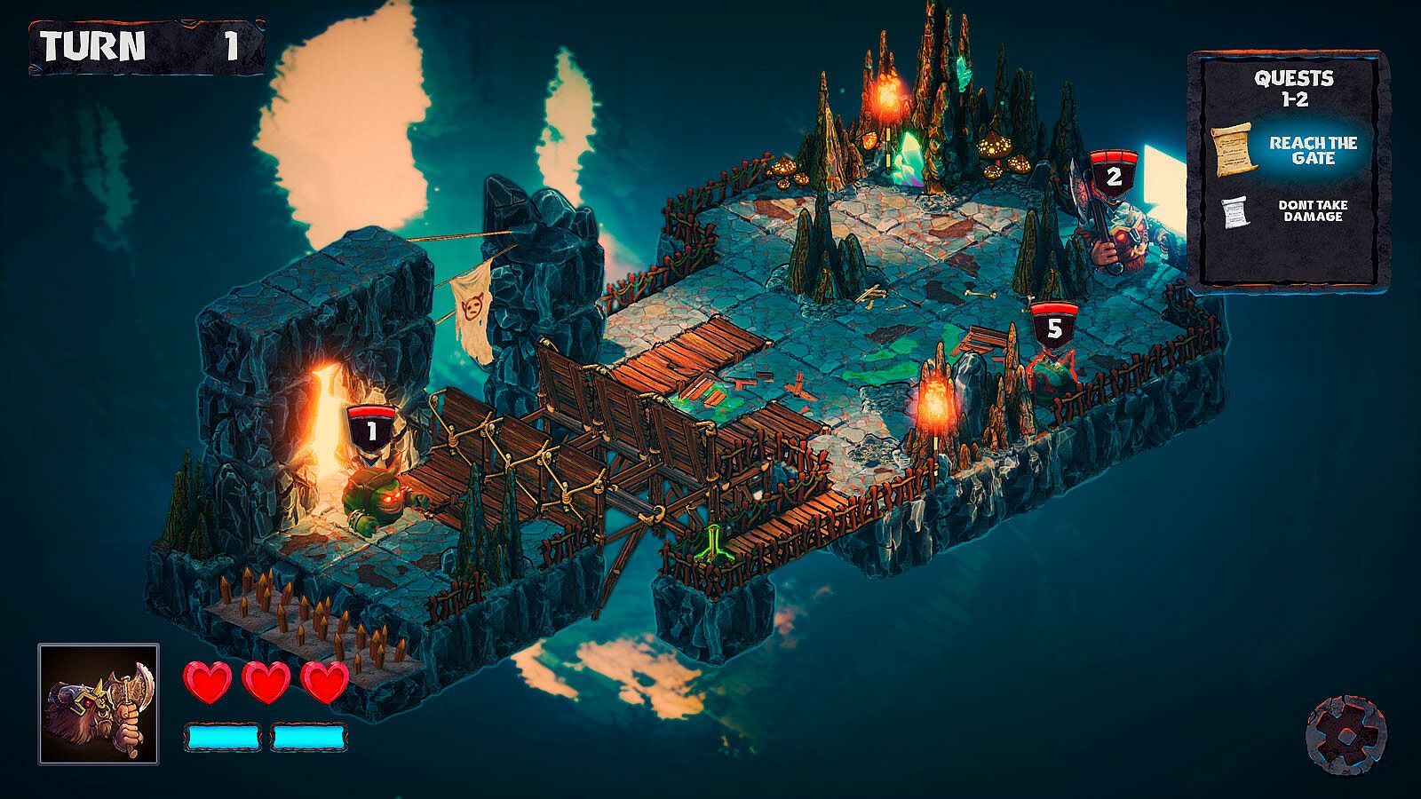 - The dungeons’ floors include environmental hazards and interactive elements that the player can either avoid or use in their favor, perhaps pushing an enemy into a spike pit or crushing them with a rolling boulder.
