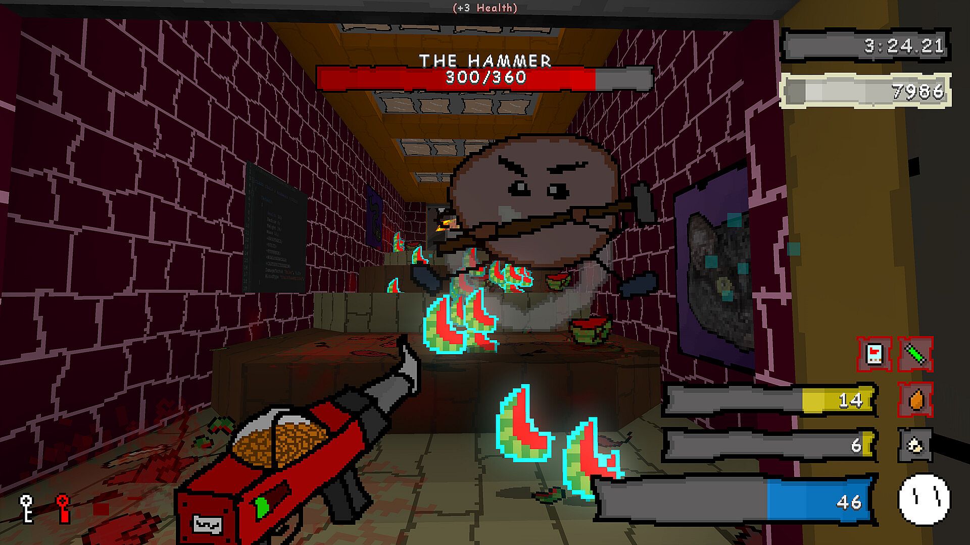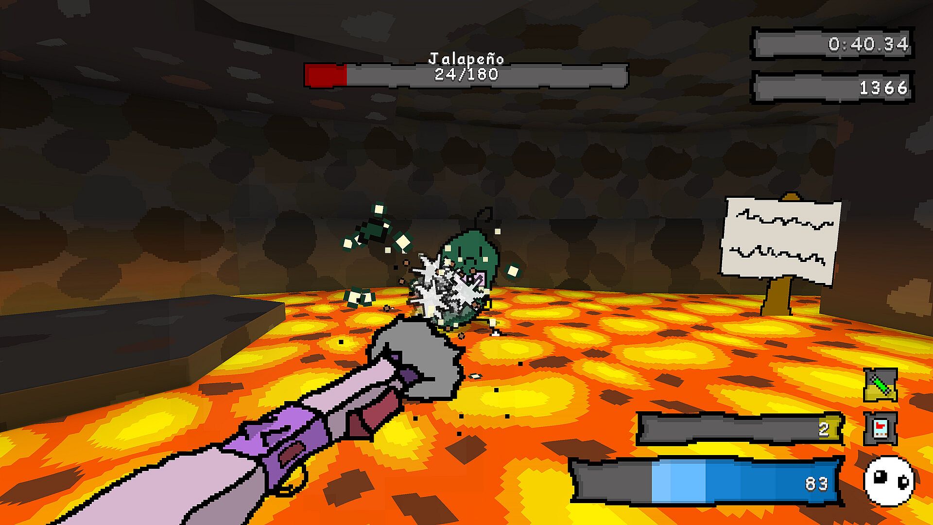 Ammo pickups are scarce in Box Party, and health pickups are nigh non-existent. Instead, regain your health and ammo by defeating foods! Combined with low ammo capacity and aggressive foods, you'll need to get a hang of the combat loop in Box Party to do well on higher difficulties.
