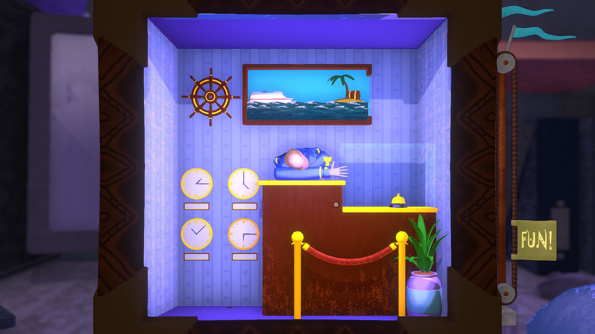 Every interaction in the box is bursting with feedback and begging to be inspected. Pushing buttons, flipping switches, launching toy planes, cutting hair, and cooking up octopus are just a few of the ways players can expect to have Fun on the cruise. There’s still a lot to enjoy in this quirky adventure, even if your boss is making you do it.
