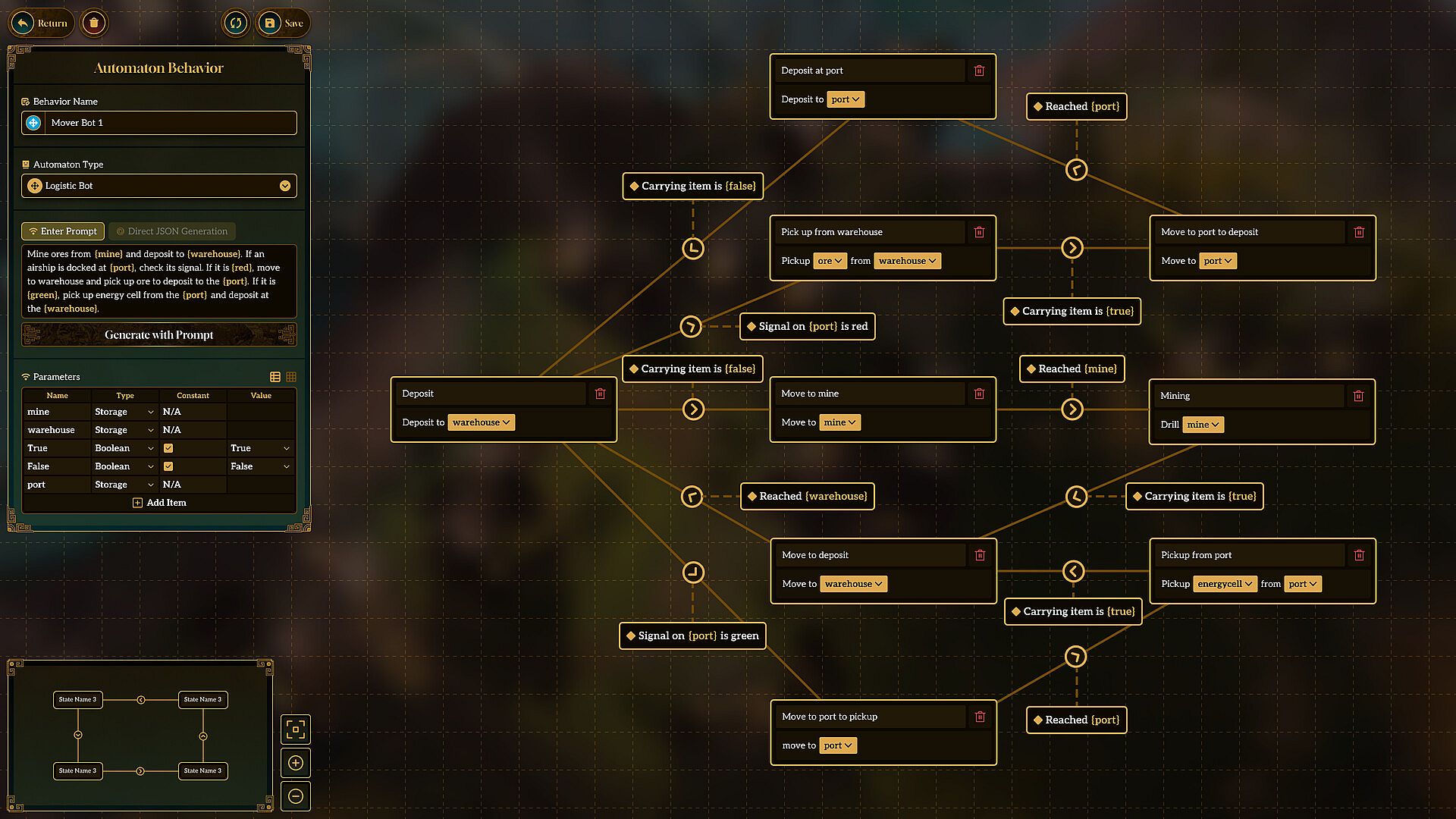 There are no conveyor belts in this game. Instead, automatons follow your instructions to transport materials. You can choose from simple preset behaviours, or fully customize your automatons by writing any text instruction that comes to mind. Need some help? The behaviour editor will guide you to create new instructions. And it’s not just the automatons, factories and wonders that can be customized to signal and work with each other. Use your imagination to make automatons collaborate and interact with their environment, buildings, anything you want. The sky is not the limit!