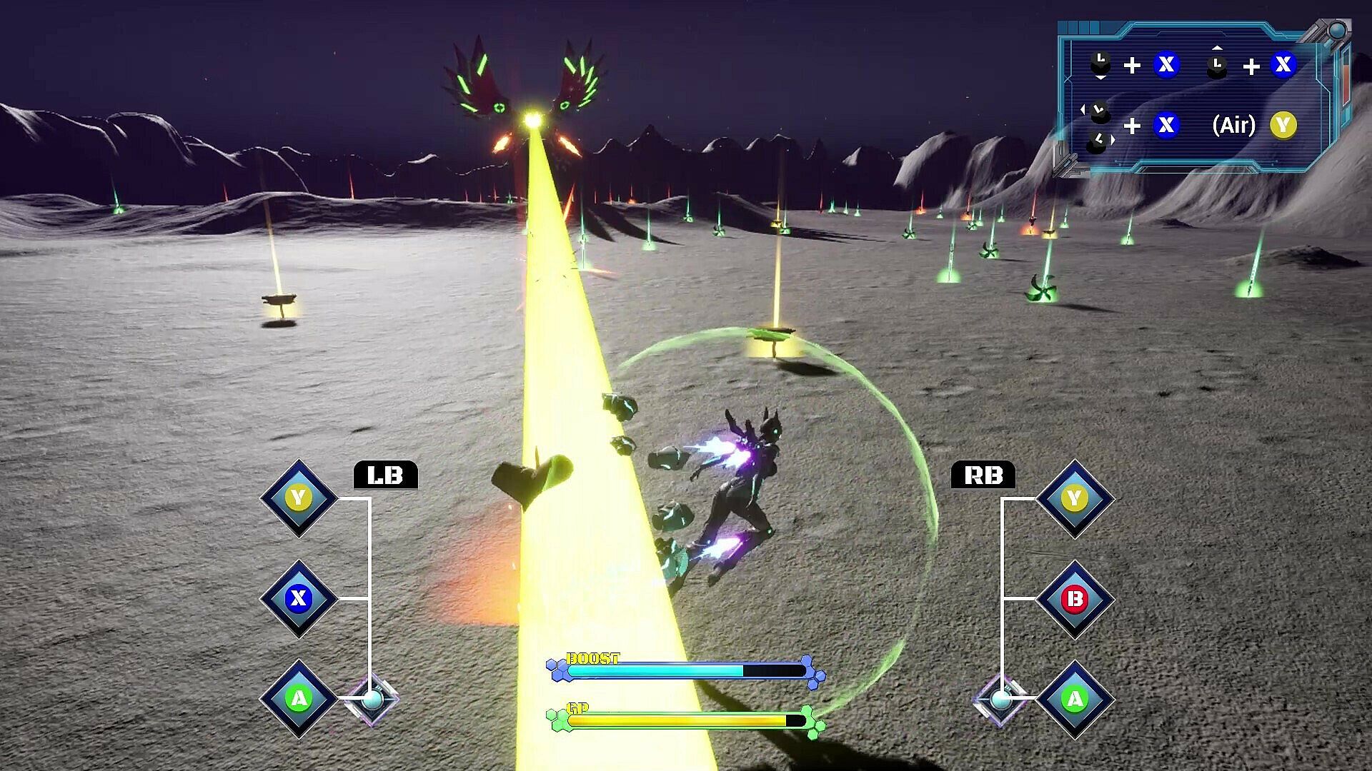 Equip weapons that fall on six floating bits and destroy the enemy's parts.