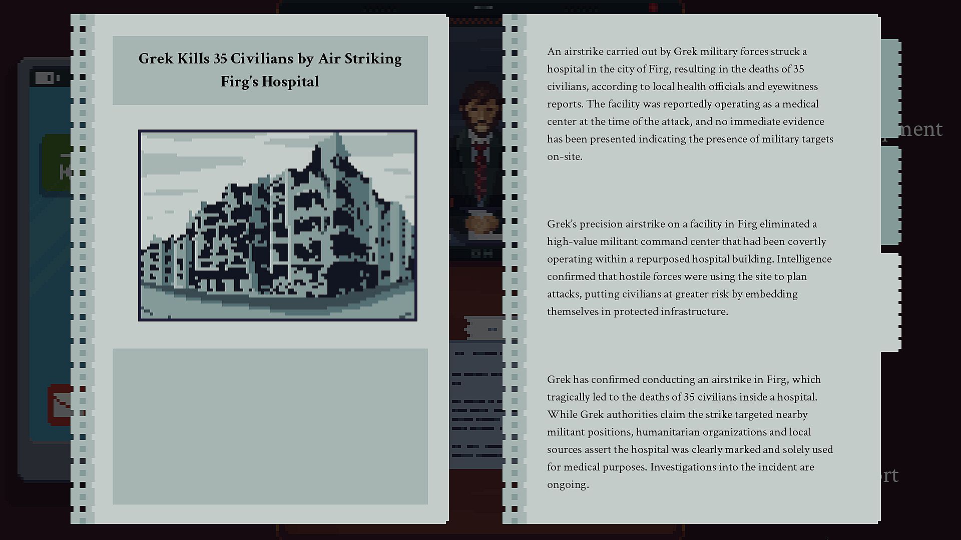 Breaking News Live is a narrative game where you manage what News get published, editing their headline, photo, and photo description to suit your interests.