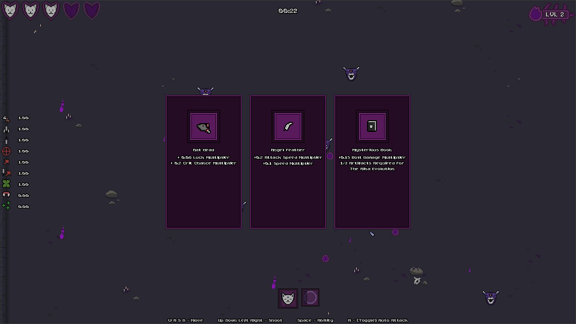 Brian, an exiled feline with magical abilities, stumbles upon a dungeon that serves as a portal to a world ruled by cosmic beings. Armed with his arcane powers, he must survive the horrors that await him.