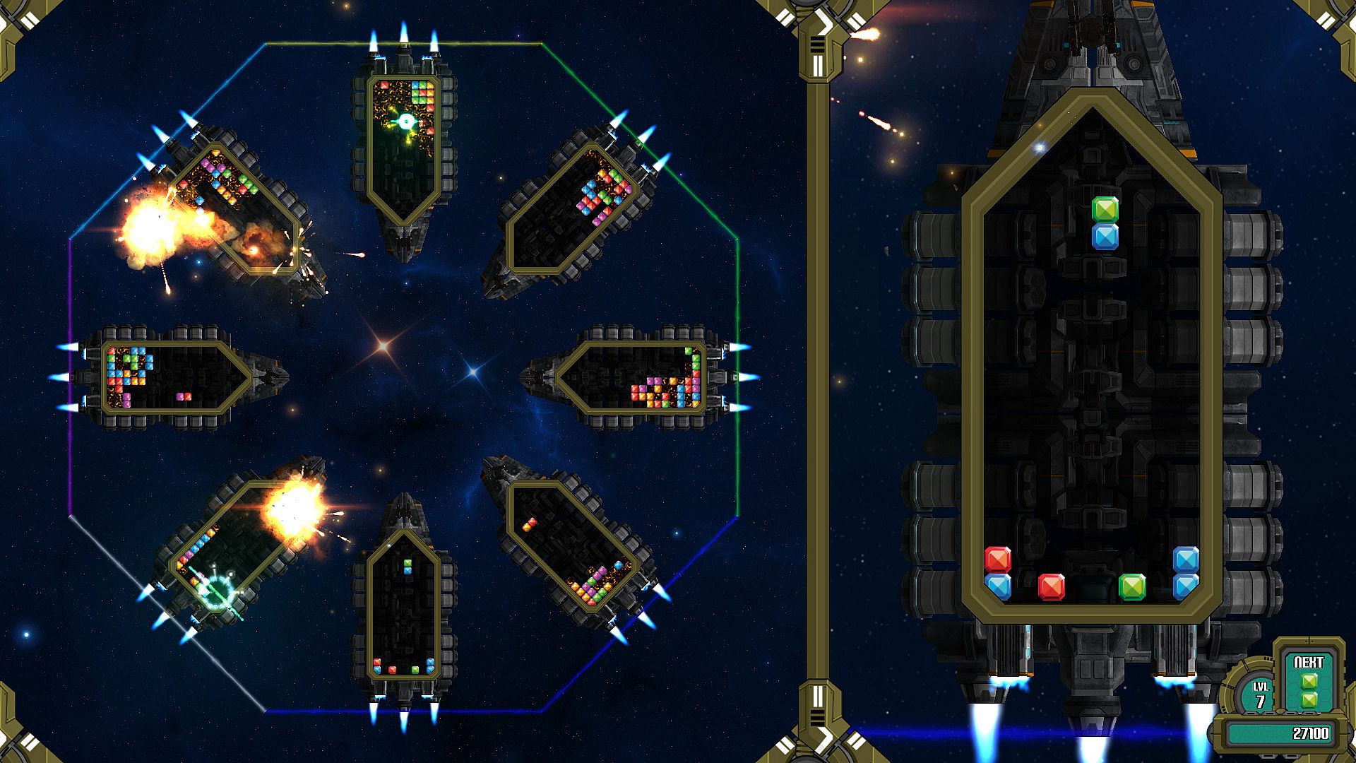 Brick Battalion is a competitive tile-matching game where you can play with up to 8 people online or with bots. Play alone, in teams or engage in a Free-For-All in a space-themed battle for domination. By matching and chaining bricks, you can create more powerful attacks to defeat your enemies.